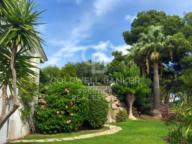 In the garden, a well-kept and secluded environment revolves around a private pool and solarium, ideal for enjoying the Mediterranean climate. As an added bonus, the property includes a sports area with a changing room, squash court, and additional bathroom, providing a complete lifestyle without leaving home.