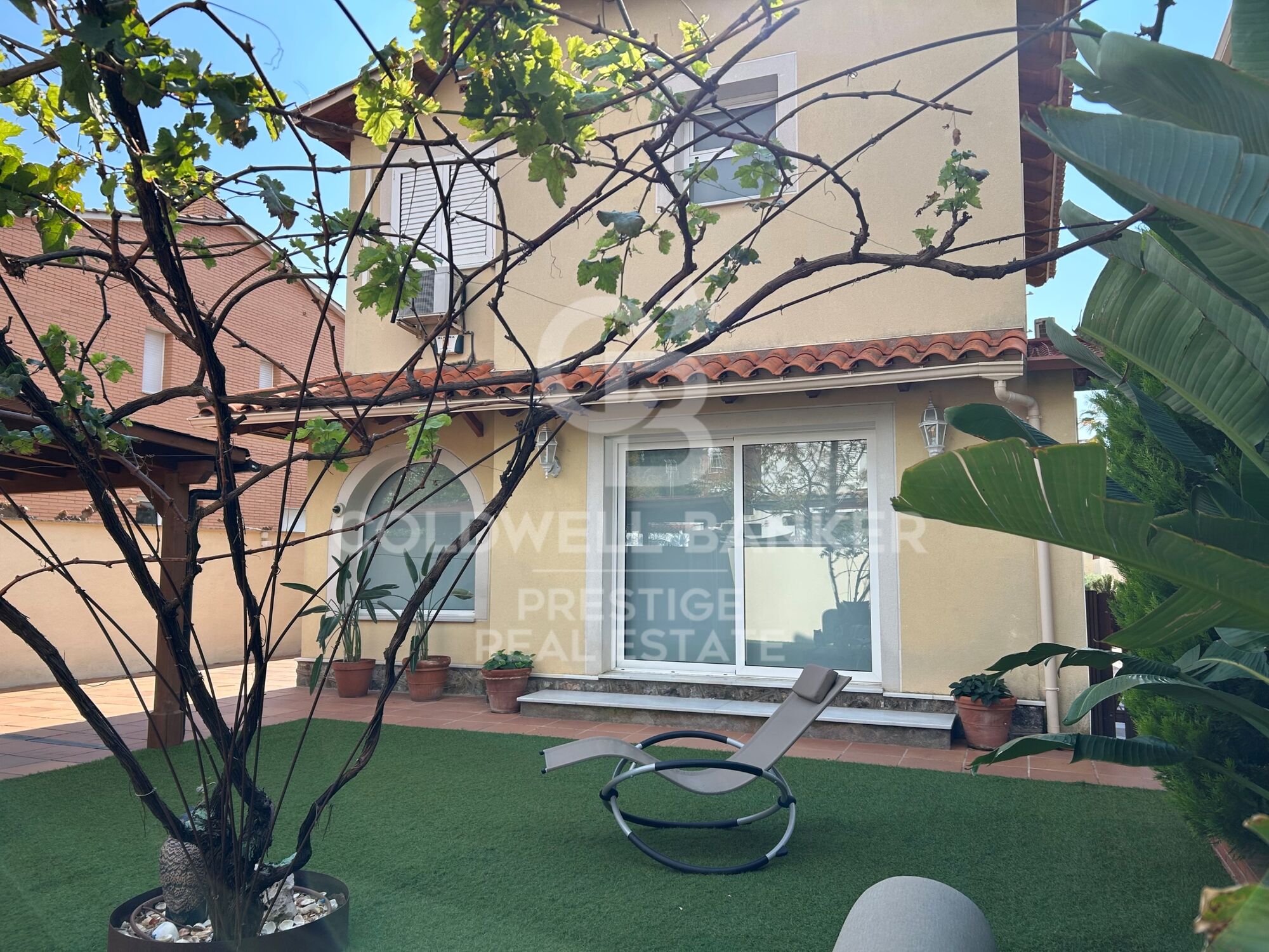It is distributed into an entrance hall, guest toilet, kitchen with dining area, and a double bedroom with bathroom. On the top floor, there are three en-suite bedrooms, the master bedroom being the largest with a dressing area and a bathtub with a jacuzzi.