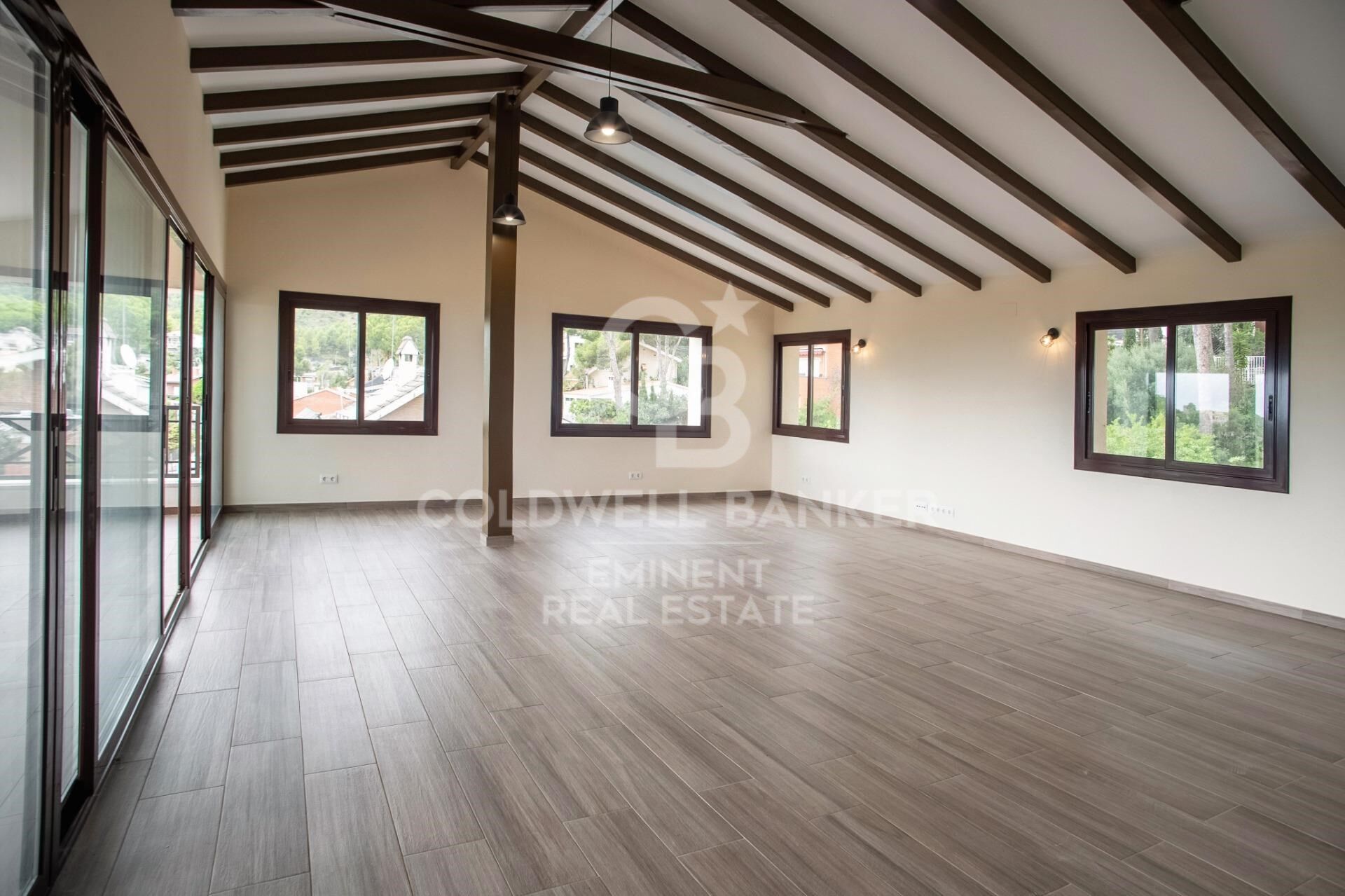 Spacious multipurpose room with fireplace and private bathroom, opening onto another private terrace ideal as a playroom, leisure area, or home cinema