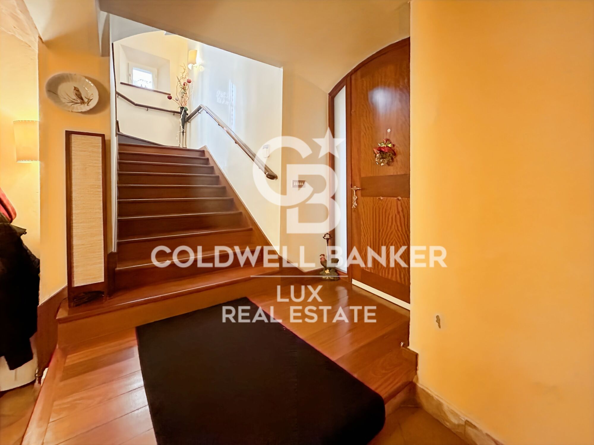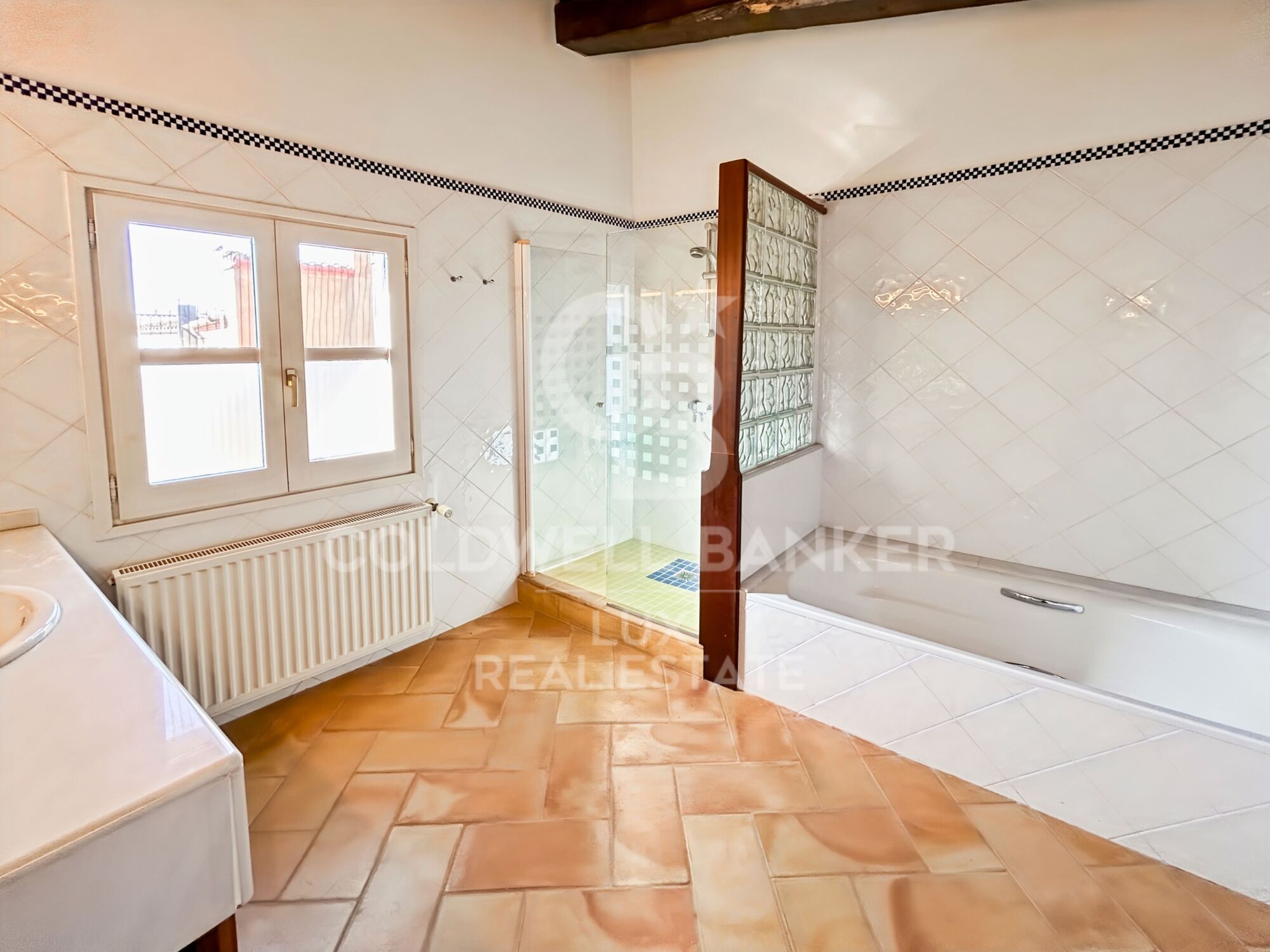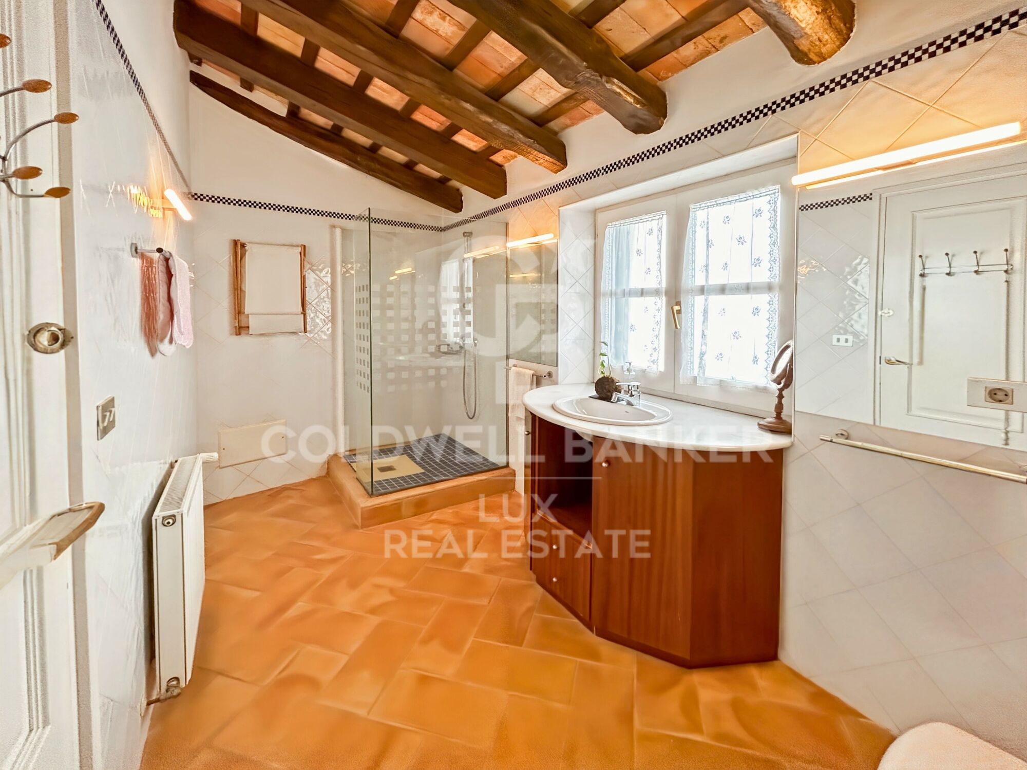 The entrance opens onto a vestibule vaulted in Catalan-style brick, giving access to the three levels. The residence has seven spacious bedrooms, five bathrooms and several multi-purpose areas.