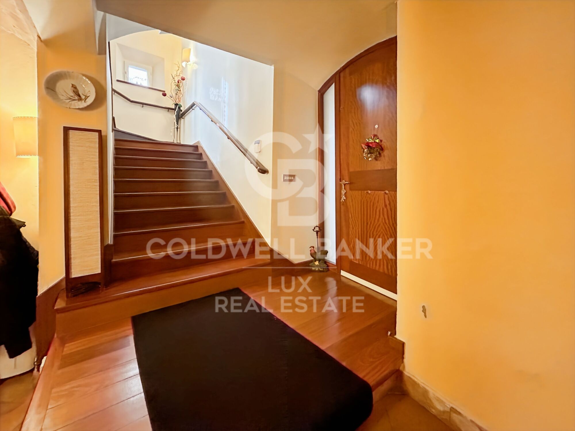 The entrance opens onto a vestibule vaulted in Catalan-style brick, giving access to the three levels. The residence has seven spacious bedrooms, five bathrooms and several multi-purpose areas.