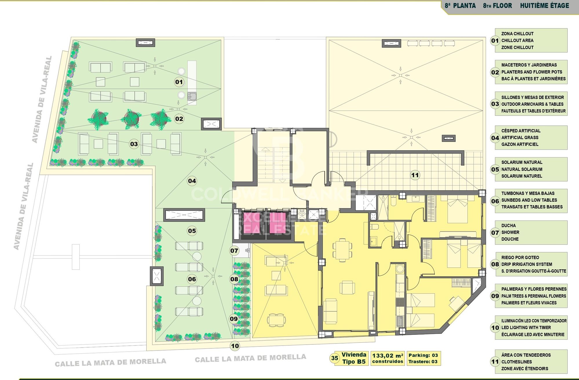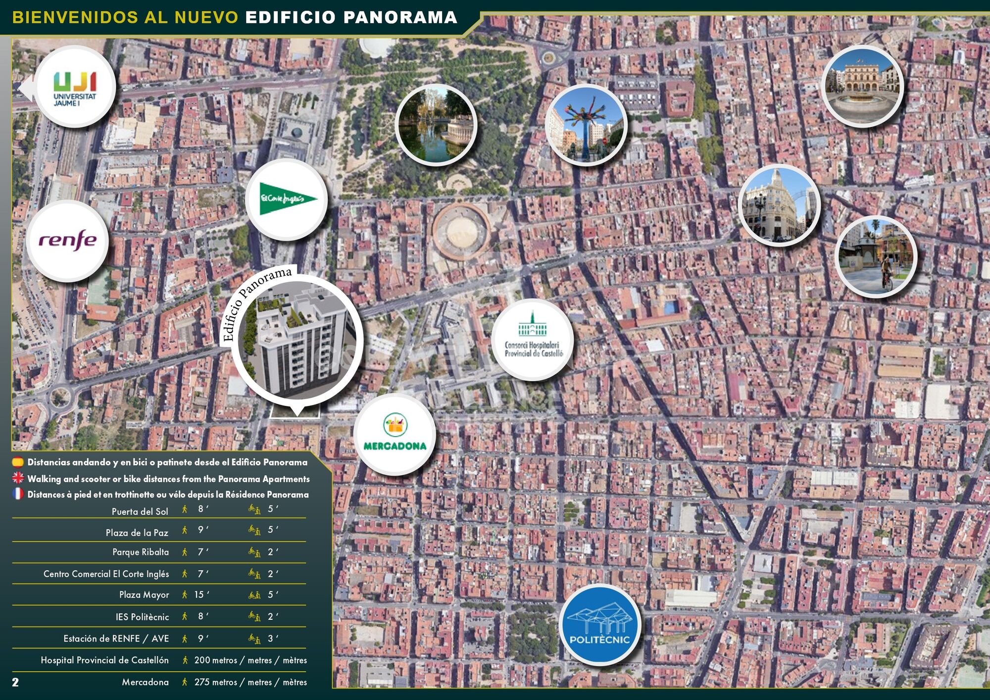 Located between Avenida de Vila-real and Gran Vía, just 8 minutes on foot from the city center and near Jaume I University. The building offers exclusive services such as a gym, jacuzzis, solarium, coworking space, and a social room. It also has easy access to main routes and public transportation.