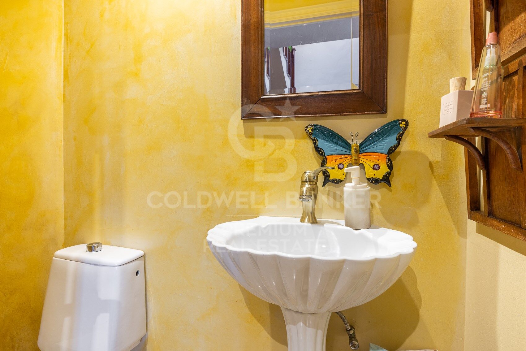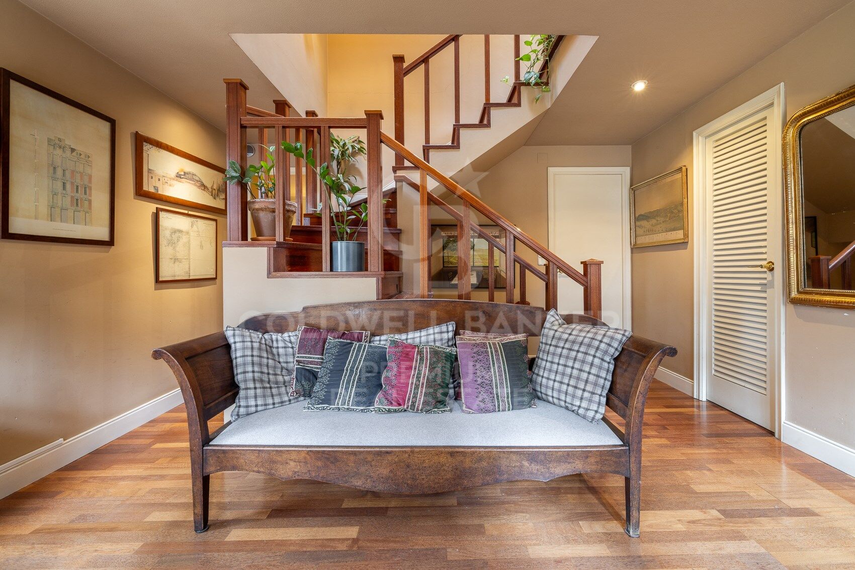 We enter the property through its pedestrian entrance located on one of the first streets built in the town, making it an established area with large properties. From the outside, we can see a solid, distinctive construction finished with terraces and large cornices, easily adaptable to the most modern aesthetic standards.