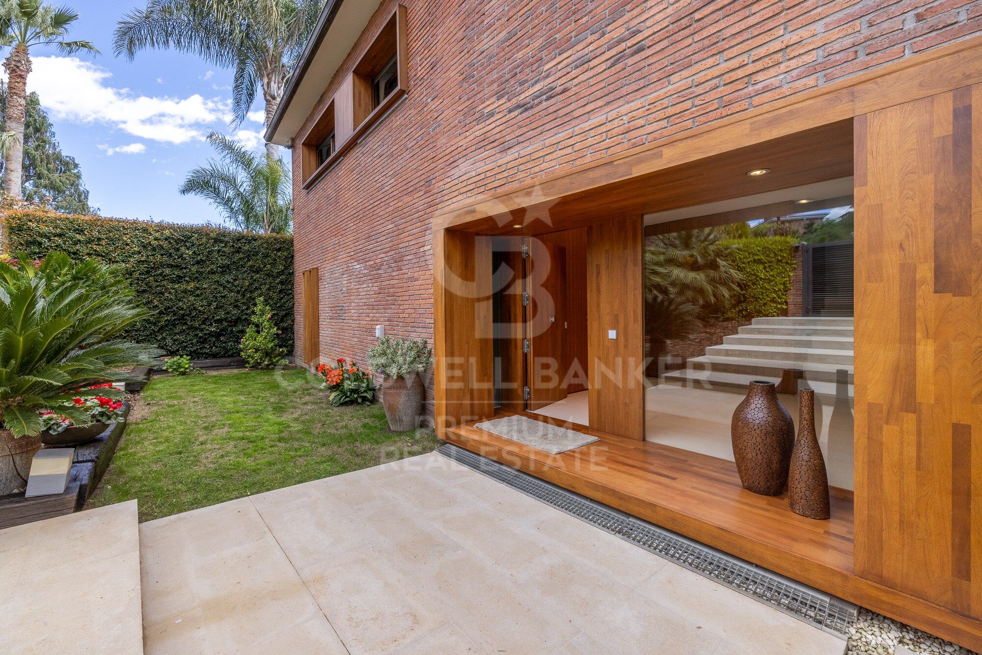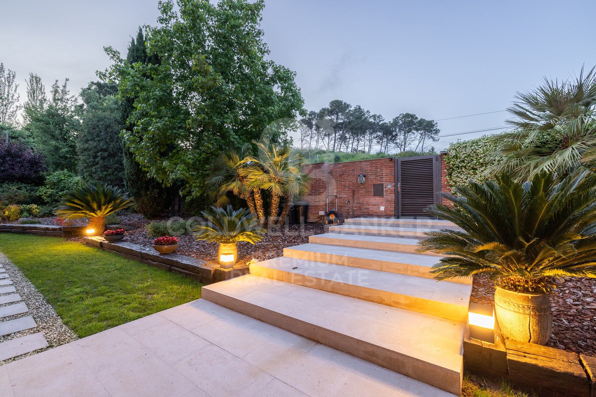 COLDWELL BANKER is pleased to present this charming, NEWLY RENOVATED house in one of the most exclusive areas of Bellaterra, with the best orientation, ready to move into. The 300 m2 house, with a land area of almost 1,000 m2 , has undergone a comprehensive renovation, both exterior and interior, resulting in a perfectly balanced complex consisting of a practical home and a modern, easy-to-maintain garden. Upon entering the property, which is entirely made of exposed brick on the exterior, we are pleasantly surprised by the landscaping that welcomes us; it is original, Mediterranean, and sustainable. The house is spread over two half floors, sufficient to overcome the unevenness of the plot. The interior access from the garage to the house also coincides directly at the entrance. On the lower floor, at the foot of the garden and pool, we find the wonderful living-dining room with a fireplace, filled with light through a large window and sliding doors that give direct access to the garden. The view of the green lawn that reaches down to the pool is very refreshing and invites us to step out into the garden. Right there, we have a large covered terrace where we can enjoy lunch and dinner al fresco, while still overlooking the enormous pool. There is enough space to accommodate a chill-out area to relax and enjoy conversations with family and friends. Finally, there is a beautiful barbecue well integrated into the building. Connected to the living room and with direct access to it, we find the functional and spacious kitchen, large enough to accommodate a breakfast area. From the kitchen, we access the utility and boiler area, which has its own exit to the west side of the house. On the same floor, there is a room that can be used as an office or bedroom, served by a bathroom with a shower. The upper floor has three double bedrooms that share a generous full bathroom, and the master suite with a dressing room and full bathroom. The garden can be seen from every room. The house has two outdoor storage rooms. The garden is irrigated by sprinkler irrigation in the pool area and drip irrigation in the planters and flowerbeds. There is a perimeter alarm. The pool has a saline water system. Gas heating. The renovation included new water, electricity, and gas lines throughout the house, and a drainage system on all sides of the roof. A walk around the house reveals every corner is well-maintained and functional. Aside from the large expanse of green lawn, the house boasts several magnificent trees. An impressive pine tree stands at the main entrance, and two cedar trees by the pool provide much-needed shade. On the east side of the house, there is an area of fruit trees. Don't miss this unique opportunity to own a brand-new home in a prime area of Bellaterra, surrounded by beautiful homes, with maximum privacy and tranquility and a south-facing orientation. LOCATION: Bellaterra is located in an elevated and sunny area, between the towns of Sant Cugat, Sabadell, Sant Quirze, and Cerdanyola. True to its origins, it has established itself as a prime residential area, with a family population residing year-round. Separated from the Collserola mountain range, Bellaterra faces the sea to the southeast and Montseny to the northeast. Its strategic location places it 12 minutes from Barcelona via the C-58 and 20 minutes from the AP-7 and B-30 highways. This connectivity allows access to all desirable services. In less than 5 minutes, you can reach leading hospitals, universities (UAB, UIC, and ESADE), the most prestigious international schools (Ágora, Europa School International, Japanese School, Thau, Viaró, La Vall), shopping centers (IKEA; Corte Inglés, cinemas), industrial estates (Can Sant Joan, etc.), and prominent sports centers. It offers the services expected of a small town, such as a pharmacy, bank, church, restaurants, sports club, hair salon, pet shop, and gas stations, among others. It also has two Generalitat railway stations. It offers everything you need to live in a natural setting without sacrificing immediate access to the surrounding cities. #ref:CBSC214