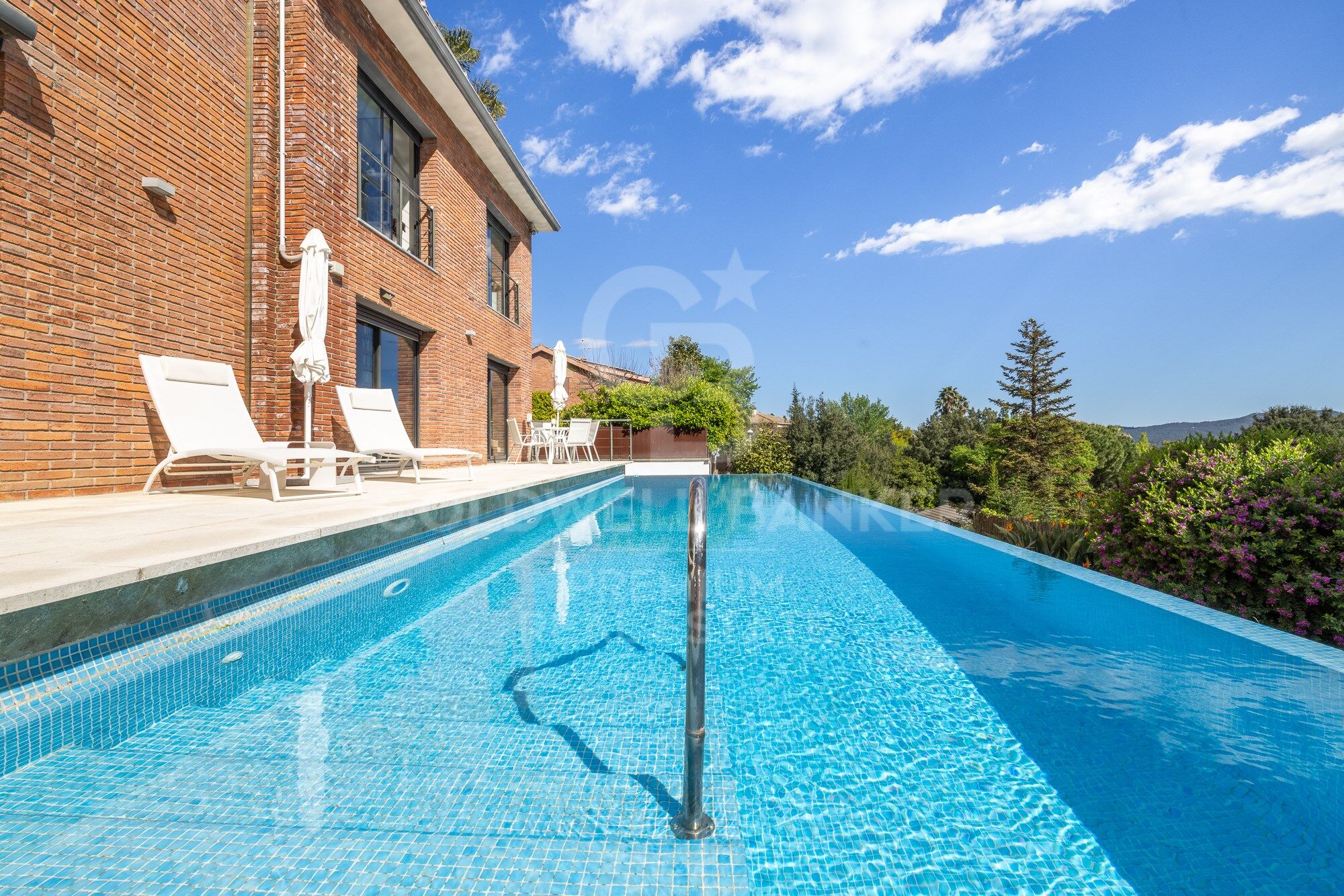 Coldwell Banker Style Real Estate presents this magnificent property located in the prestigious Les Pedritxes residential area of Matadepera, an enclave surrounded by nature and tranquillity. With a plot of 4,000 m², this residence offers maximum privacy and spectacular views of the surrounding forest, creating an ideal environment for those seeking relaxation and comfort in complete harmony with their surroundings. The house, with a built area of 608 m², is distributed over two floors currently configured as two independent dwellings connected internally, allowing for great flexibility of use: ideal for large families, visitors or even for combining living and working. Its sustainable infrastructure guarantees total self-sufficiency thanks to solar panels, a high-capacity generator, a rainwater collection system, a water softener and three 1,000-litre tanks. On the main floor, a spacious 70 m² living room with a wood-burning fireplace and panoramic views creates a cosy and bright space. The area is completed by a fully equipped kitchen, wine cellar, two bedrooms, a full bathroom and an en-suite bedroom with a private bathroom. The upper floor offers a second living-dining room with kitchen, two double bedrooms, a shared bathroom, and a master suite with dressing room. From this floor, stairs lead to an attic/study, perfect as a reading corner or work area. In addition, there is a multipurpose room with a fireplace, currently used as an office and gym. Outside, the private swimming pool is the heart of outdoor life, surrounded by unrivalled natural surroundings, ideal for enjoying unforgettable moments of relaxation and leisure with family and friends. The property also has a garage, which could be converted into an additional room or leisure space according to your needs. This property represents a unique opportunity for those seeking the perfect combination of comfort, sustainability and quality of life in one of the most privileged settings in the area. At Coldwell Banker, we offer you the services of our best estate agents to provide you with professional, personalised and efficient service. If you wish, we can carry out a financing study at no cost. Do not hesitate to contact us to discover your next home in Les Pedritxes! #ref:CBMT703