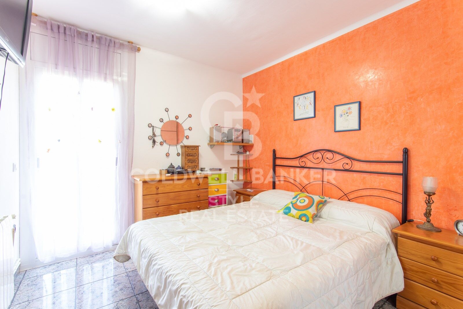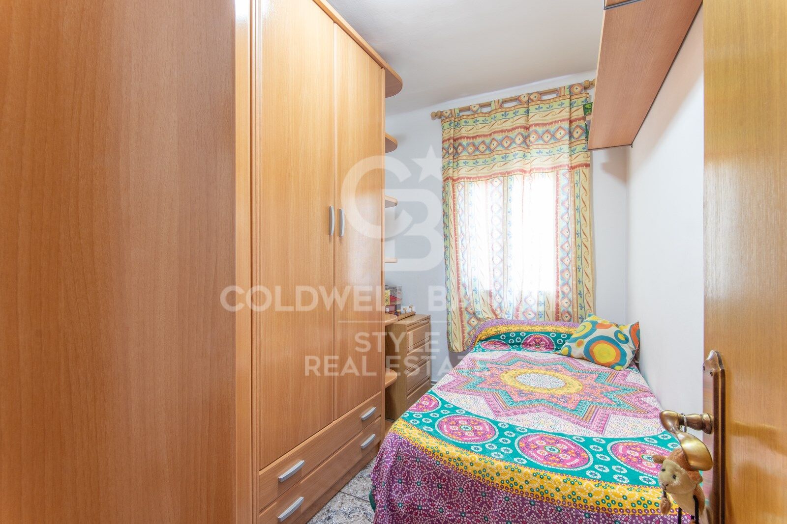 On the upper floor, the house has three bedrooms and a full bathroom. One of the bedrooms has direct access to a balcony overlooking the courtyard, providing an intimate and pleasant space.