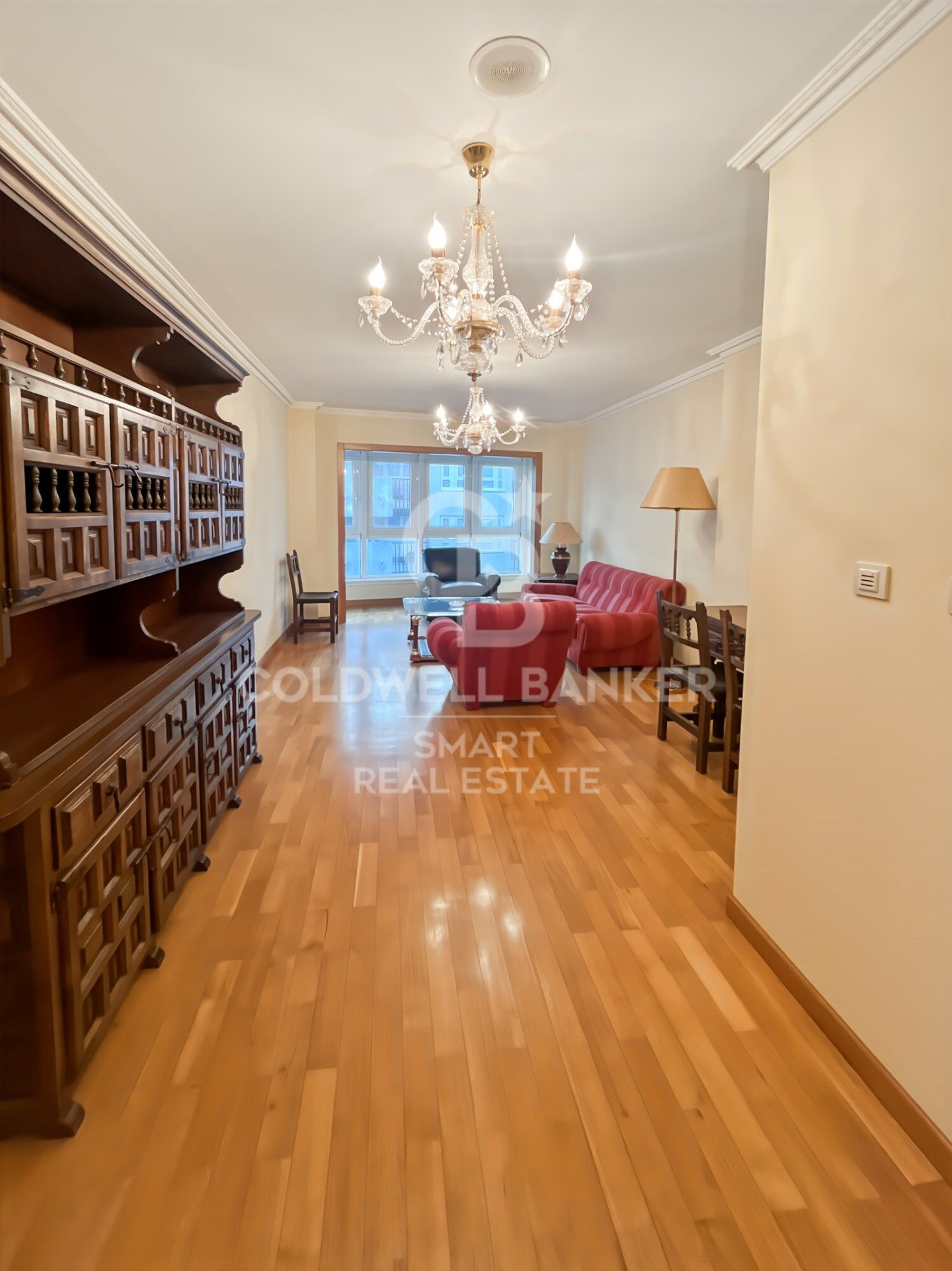 La vivienda se sitúa en la cuarta planta del edificio, tiene una superficie de 97 m2 y se distribuye en 3 dormitorios, 2 baños completos, salón-comedor con gran entrada de luz natural y cocina independiente con zona de lavandería.