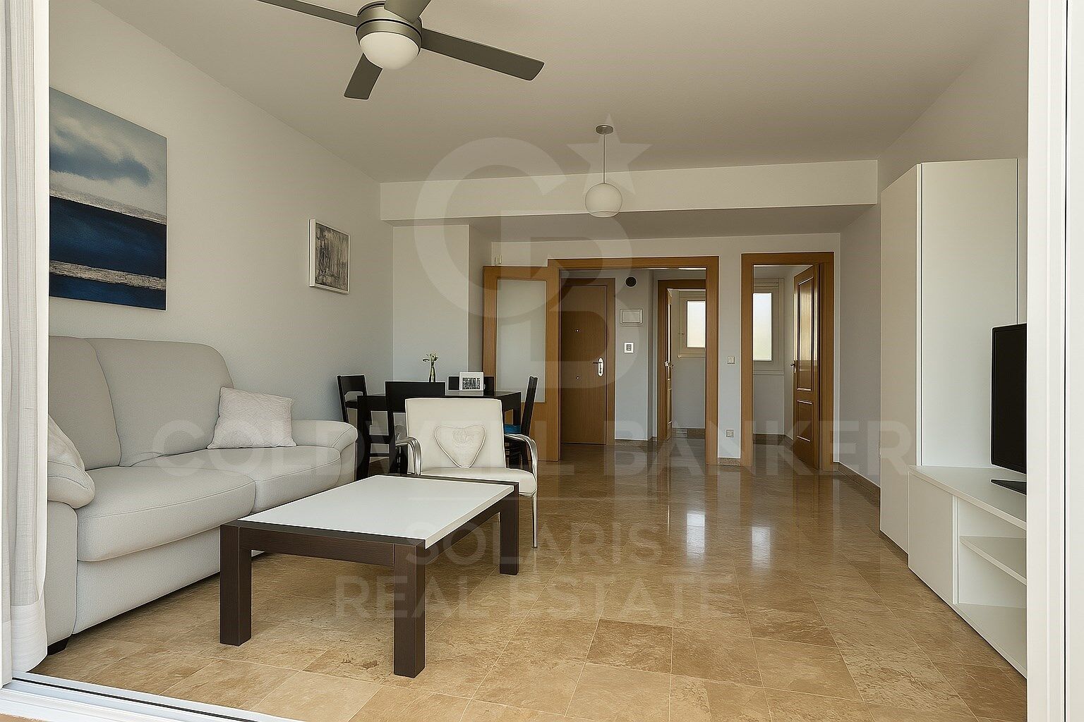 Living room with flat screen TV and access to a large terrace, perfect to enjoy at any time of the day.