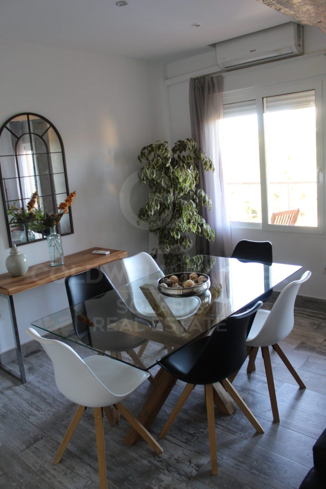 The house, located on the middle floor, offers stunning views of the sea and the Montgó massif. It has a spacious and bright living room, separate kitchen, two bedrooms, a full bathroom and a toilet. In addition, it has air conditioning in the living room and in the master bedroom, as well as a private parking area, a highly appreciated added value in this highly demanded area.