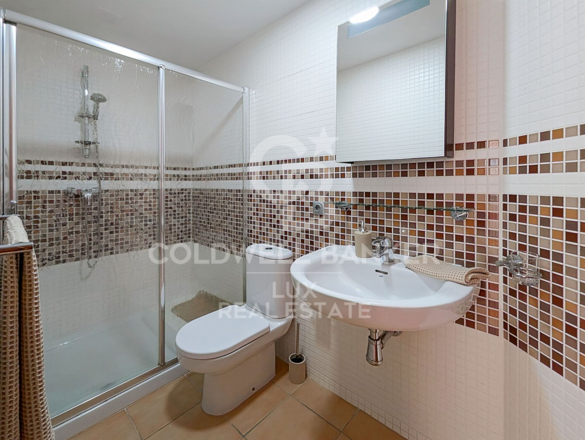 Upstairs, the house has a children's bedroom and a modern bathroom. A study, which can easily be converted into an additional bedroom, offers flexibility and convenience. The luxurious and spacious master bedroom has a dressing room, en suite bathroom and private terrace with stunning views. A further en suite bedroom with access to a terrace adds to the comfort of this residence.