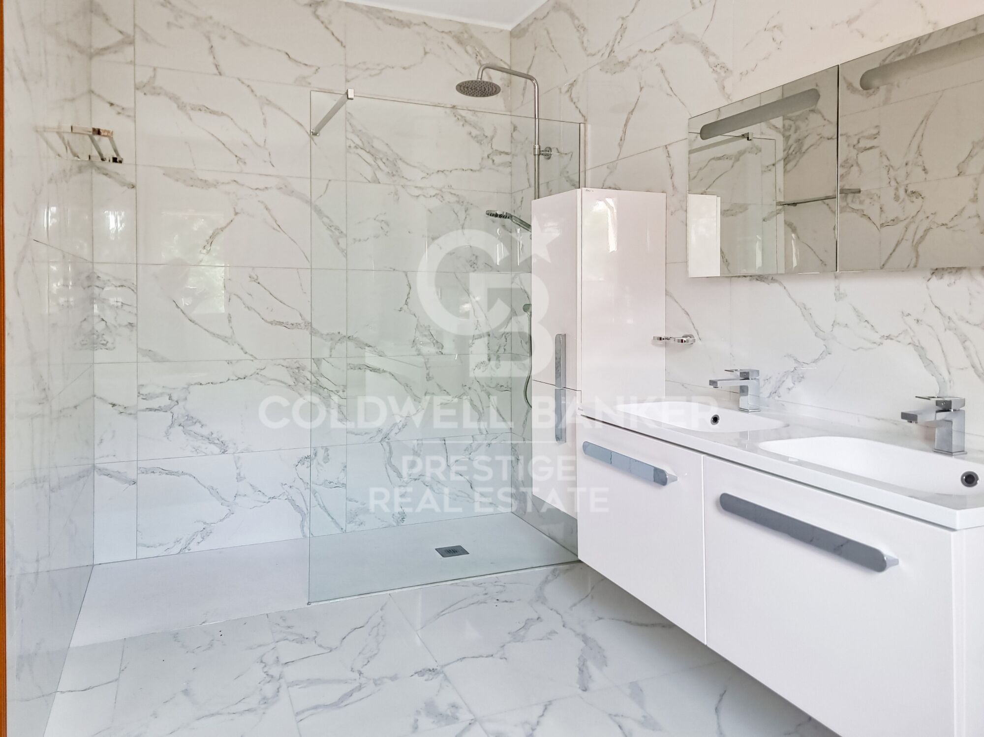 On the first floor, a large master suite with bathroom and dressing area, with great storage capacity. 2 bright double bedrooms and 2 complete bathrooms.