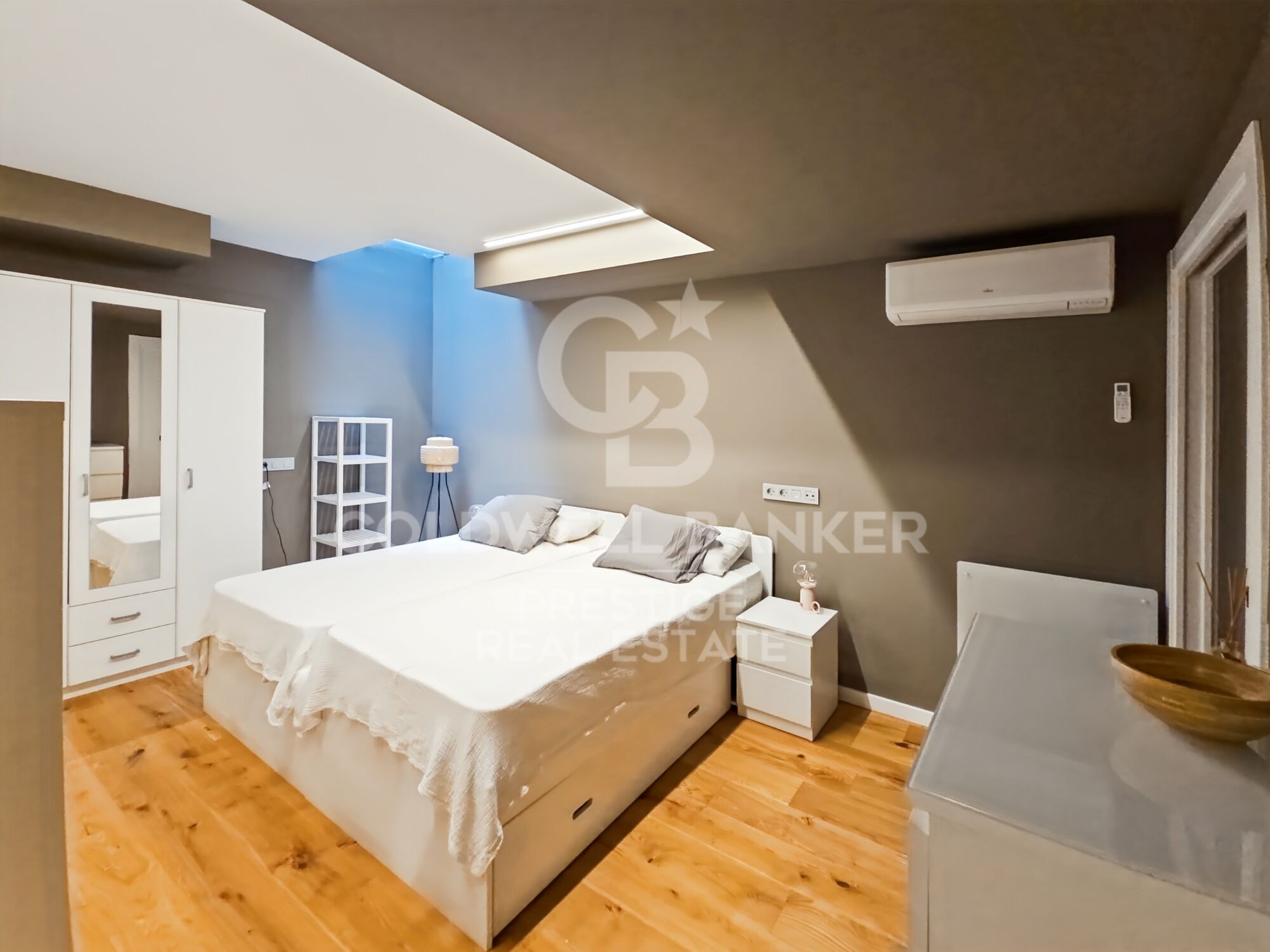 Basement:The basement level features a spacious multipurpose room, fully open-plan and filled with natural light thanks to a skylight, which brings brightness and comfort to the space. Its layout allows for various uses, such as a gym, playroom, home cinema, or office. Currently, it is set up as a triplex-style bedroom. This floor is completed by a full bathroom and a technical room for installations and equipment.