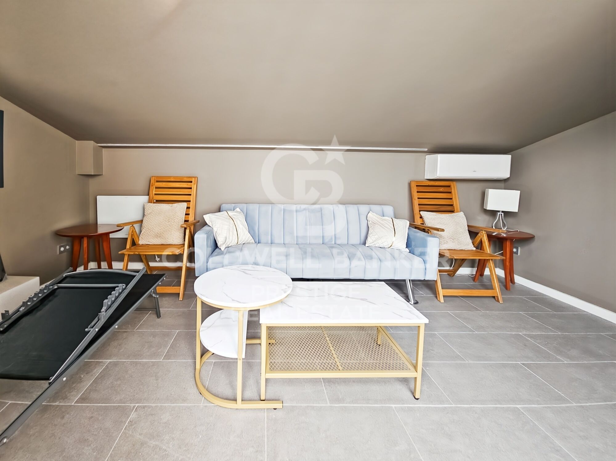 Basement:The basement level features a spacious multipurpose room, fully open-plan and filled with natural light thanks to a skylight, which brings brightness and comfort to the space. Its layout allows for various uses, such as a gym, playroom, home cinema, or office. Currently, it is set up as a triplex-style bedroom. This floor is completed by a full bathroom and a technical room for installations and equipment.