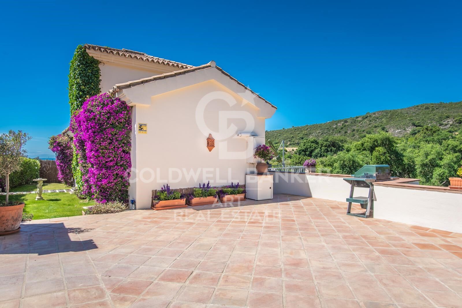 Situated in the peaceful hills of Forest Hills, Estepona, this elegant west-facing villa offers breathtaking panoramic views of the sea and mountains. Nestled among evergreen cork oaks and pine trees, it enjoys a lush, green setting even during the peak of summer. Forest Hills is a tranquil and diverse residential area, home to year-round residents including families and retirees of various nationalities. The nearest neighbors are English and previously owned one of the region's most renowned golf courses.