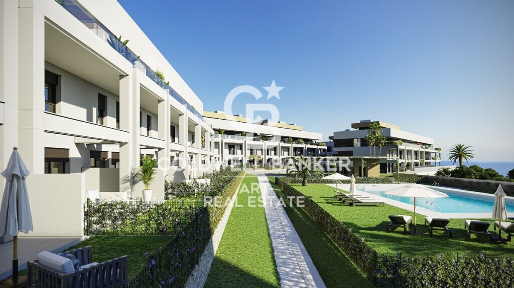 Los Miradores del Sol is an exclusive residential complex located in Estepona, known for its modern and avant-garde architecture. The project is arranged around a large central landscaped plaza, featuring lawns, trees, and carefully designed green spaces that create a natural and relaxing environment. At the heart of the complex are communal swimming pools and jacuzzis for both adults and children, as well as a children's play area, perfect for enjoying with the family. The development offers 2- and 3-bedroom apartments with 2 bathrooms, all designed to make the most of natural light. Large windows connect the living room and the master bedroom to the terrace, creating bright, spacious, and comfortable interiors. All apartments include a parking space and storage room located in the basement. In addition, you can customize the finishes of your new home with a variety of options to suit your personal style. Just a few minutes from the complex is Playa del Saladillo, one of the most popular beaches in the area, boasting over 1,500 meters of fine golden sand and awarded the Blue Flag for its clear turquoise waters. It's the perfect spot to relax or enjoy water sports all year round. The residential complex is surrounded by a full range of services and amenities, including supermarkets, banks, pharmacies, restaurants, and more. Sports enthusiasts will find a nearby tennis club and municipal sports center. Just a short walk from the beach is the charming Laguna Village shopping center, ideal for seaside shopping and dining. Estepona is also a paradise for golf lovers. Near the complex you'll find some of the most prestigious golf courses on the Costa del Sol, such as El Paraíso Golf Club, host of the Spanish Championship, along with La Resina, Atalaya, and the Real Club de Golf, among others. This exceptional offer makes the area one of the most sought-after and exclusive on the coast. #ref:CBSH843