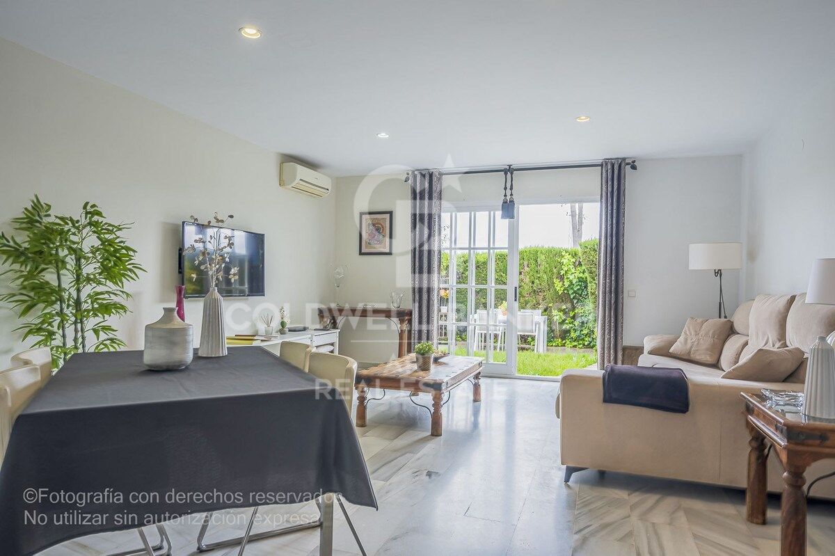 Located in a peaceful residential area of Bel-Air, within the sought-after New Golden Mile, this charming townhouse offers the perfect combination of space, comfort, and a relaxed lifestyle by the sea. The property welcomes you with a cozy front courtyard that leads to a bright entrance hall and a spacious living room with direct access to a private gardenideal for enjoying the outdoors. From here, a private gate opens directly to the beautifully maintained communal pool and lush green areas, creating a resort-like atmosphere all year round.