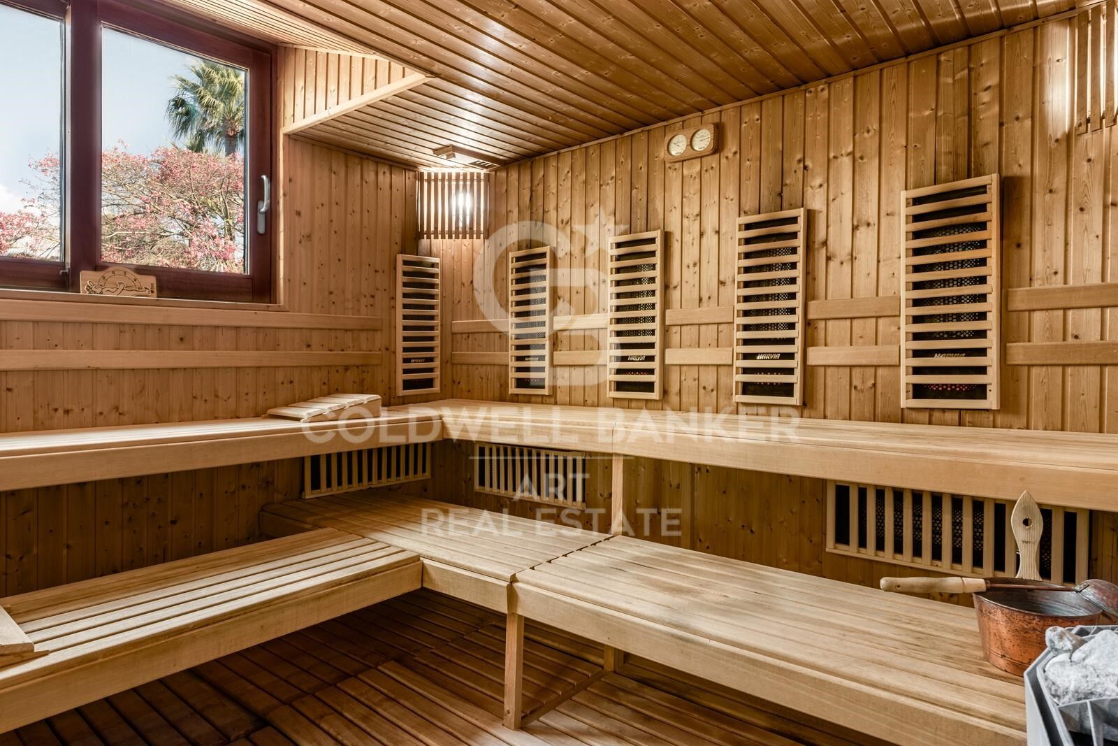 With perfect south-facing orientation, the property takes full advantage of the region's year-round sunshine. The main house spans two levels and offers 748 m² of refined interior space, including a modern kitchen, cinema room, sauna, gym, and more. A separate two-level guest house of 158 m² provides additional bedrooms and large terraces, while the 164 m² caretaker's home ensures comfortable on-site accommodation for staff.