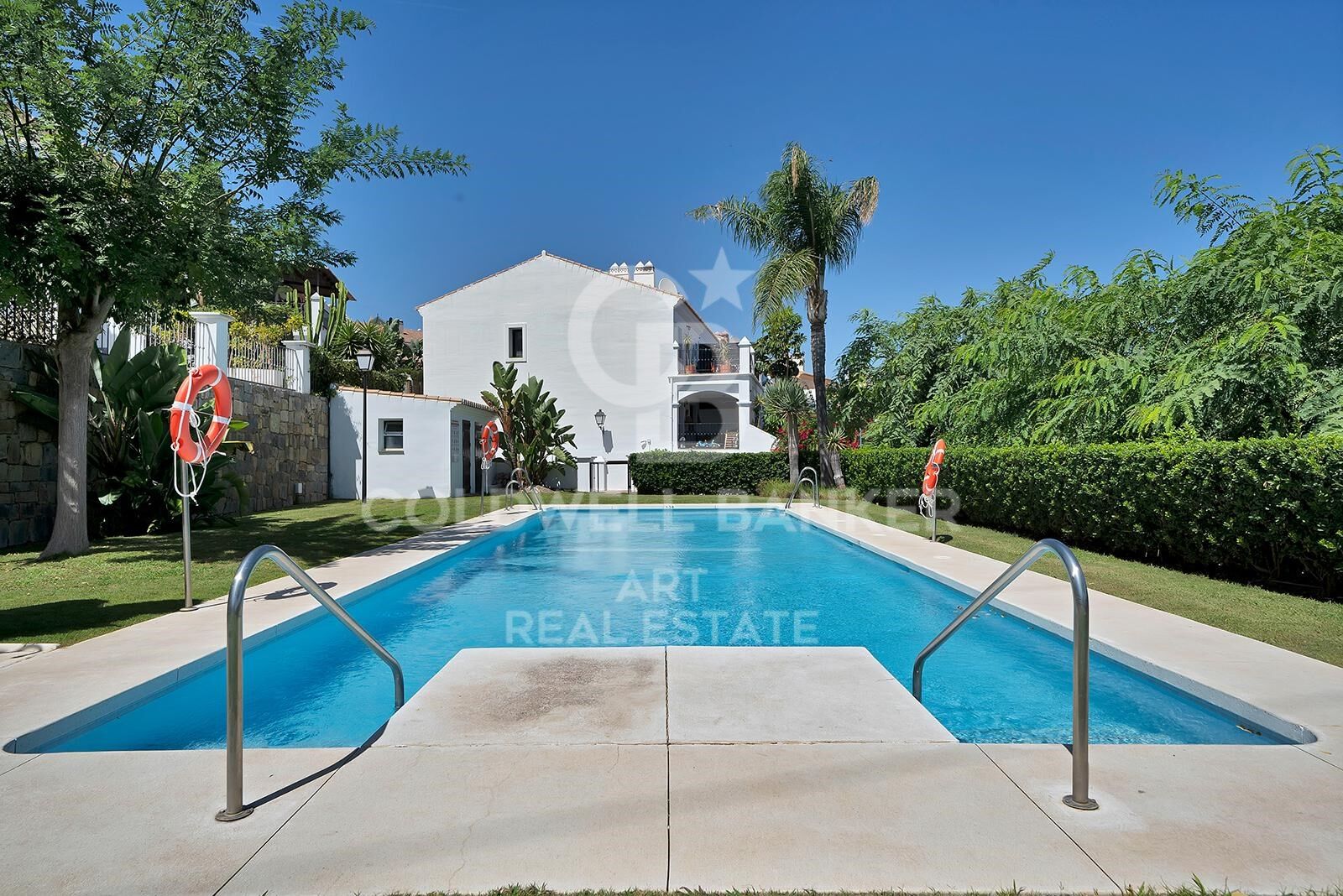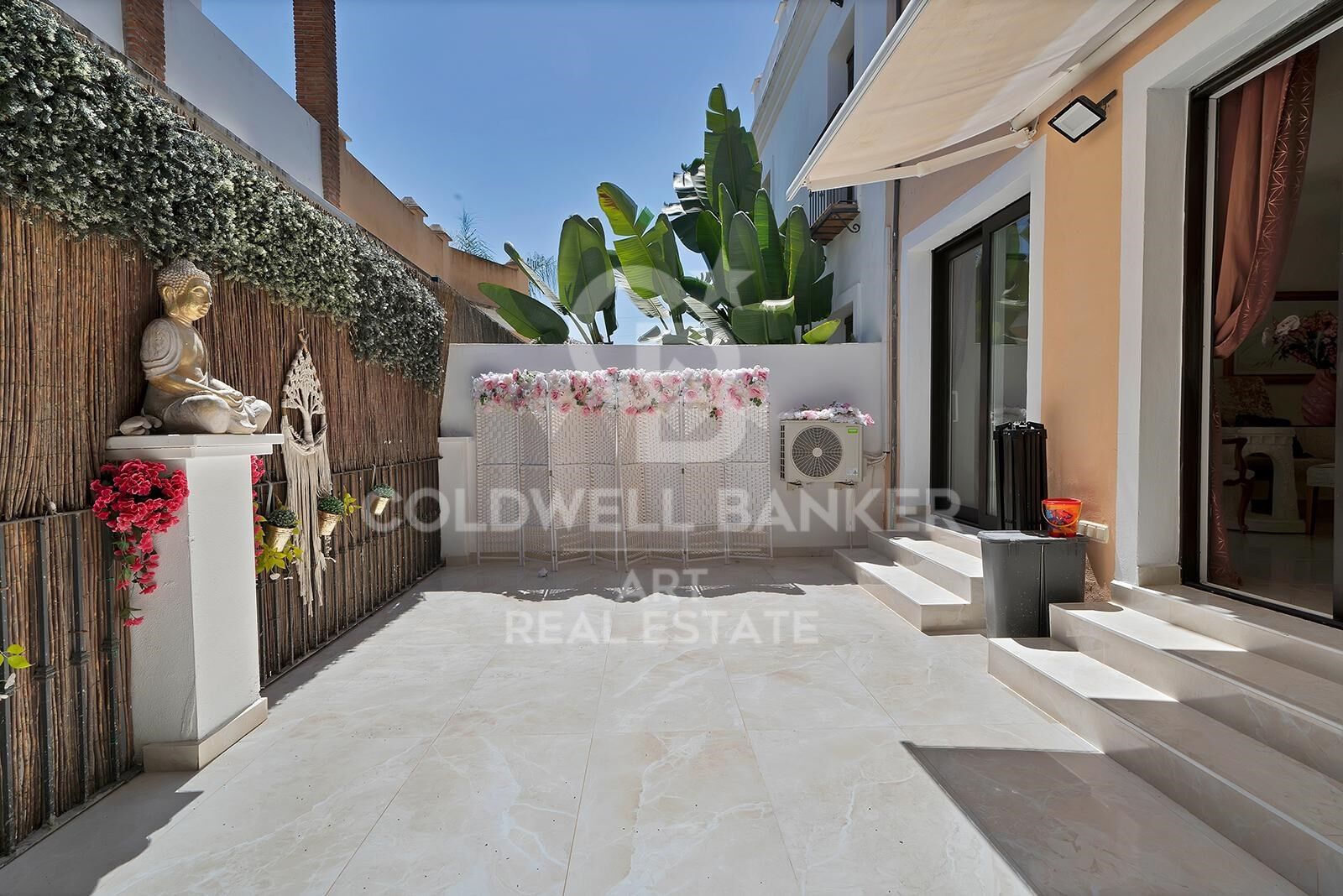 Located in a peaceful residential area of Bel-Air, within the sought-after New Golden Mile, this charming townhouse offers the perfect combination of space, comfort, and a relaxed lifestyle by the sea. The property welcomes you with a cozy front courtyard that leads to a bright entrance hall and a spacious living room with direct access to a private gardenideal for enjoying the outdoors. From here, a private gate opens directly to the beautifully maintained communal pool and lush green areas, creating a resort-like atmosphere all year round. The ground floor also includes a guest toilet and a separate kitchen with views of the garden. Upstairs, the home features three bedrooms and two bathrooms, one of which is en suite. At the top, a private solarium offers stunning panoramic views of the sea and mountains, making it the perfect spot to unwind at sunset. The urbanization includes an internal road that allows direct parking at the doorstep. The New Golden Mile, nestled between Marbella and Estepona, is one of the most desirable stretches of the Andalusian coastline. Its name reflects the area's prestige, with exclusive residential communities, golden beaches, premium services, and excellent connectivity to the main attractions of the Costa del Sol. Bel-Air itself is known for being a tranquil and well-positioned enclave, just minutes from golf courses, restaurants, supermarkets, and international schools. Estepona, the municipality to which Bel-Air belongs, blends the charm of its traditional Andalusian old town with emerging luxury developments like this one. Boasting over 20 kilometers of coastline, modern marinas, scenic coastal trails such as the Senda Litoral, and a dynamic cultural scene, Estepona has become one of the most attractive places to live or invest. The city strikes a perfect balance between Mediterranean character and a forward-looking vision focused on sustainability and quality of life all year round. #ref:CBSH894