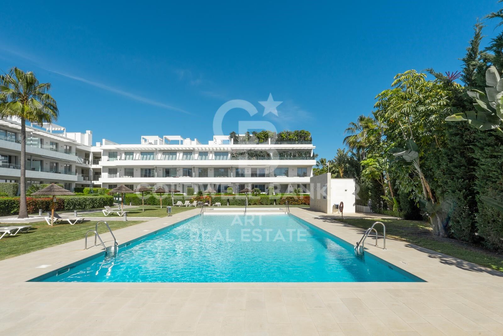 Bright, spacious, and ideally located, this modern 2-bedroom, 2-bathroom apartment sits in the desirable area of Bel-Air, at the heart of the New Golden Mile. The master bedroom includes an en-suite bathroom and opens directly onto a generous 21 m² terrace with views of the beautifully maintained communal poolperfect for embracing the Mediterranean lifestyle.