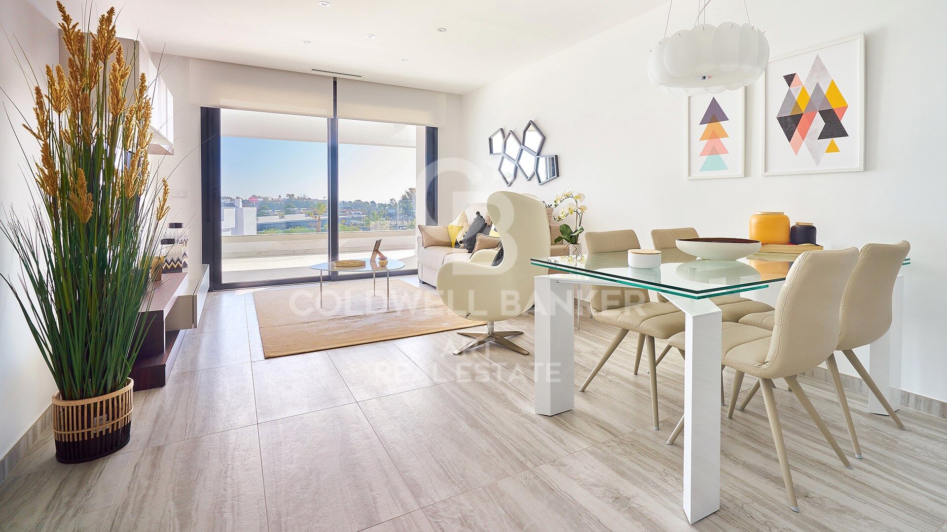 The development offers 2- and 3-bedroom apartments with 2 bathrooms, all designed to make the most of natural light. Large windows connect the living room and the master bedroom to the terrace, creating bright, spacious, and comfortable interiors.