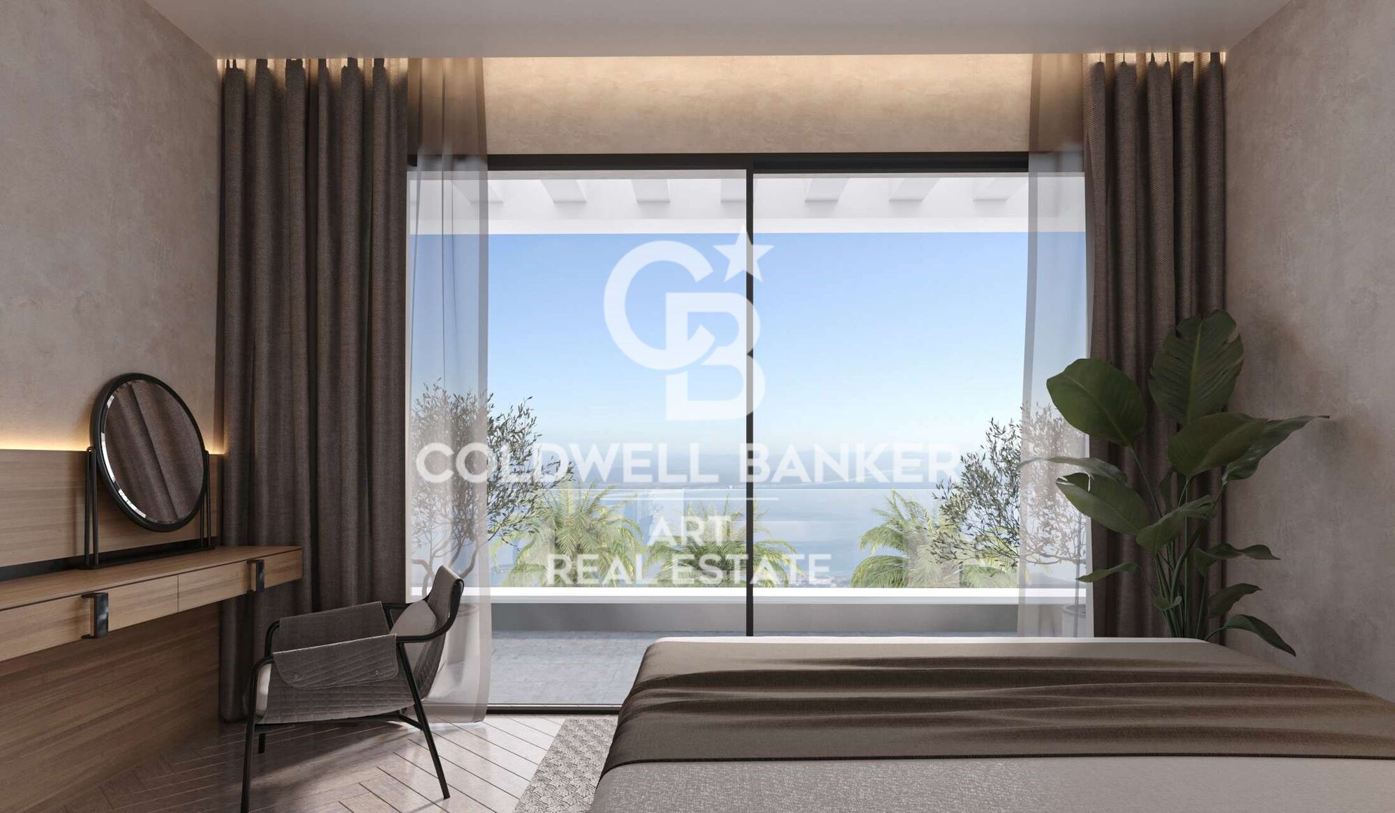 With only 15 apartments distributed across three low-rise blocks, this gated community with video surveillance ensures privacy, security, and comfort. Designed with meticulous attention to detail, the project reflects architectural excellence: expansive floor-to-ceiling glass panels replace traditional windows, flooding each space with natural light and seamlessly connecting the interiors to generous terraces with panoramic sea views.