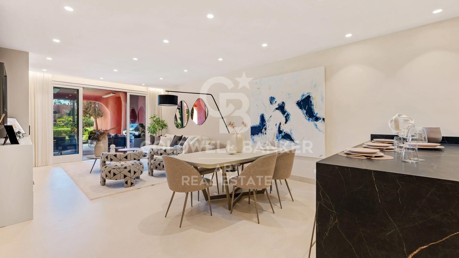 This south-facing ground-floor apartment with three bedrooms and three bathrooms has been fully renovated to the highest standards and offers delightful views over lush, landscaped gardens. Located in the prestigious gated community of Torre Bermeja on the New Golden Mile, this high-end residence is known for its mature subtropical gardens and outstanding five-star facilities, including two outdoor pools, two fully equipped gyms, an indoor heated pool, and two saunas. The complex also offers 24-hour security, direct access to the beach and seafront promenade, and is within walking distance of several top-rated restaurants.