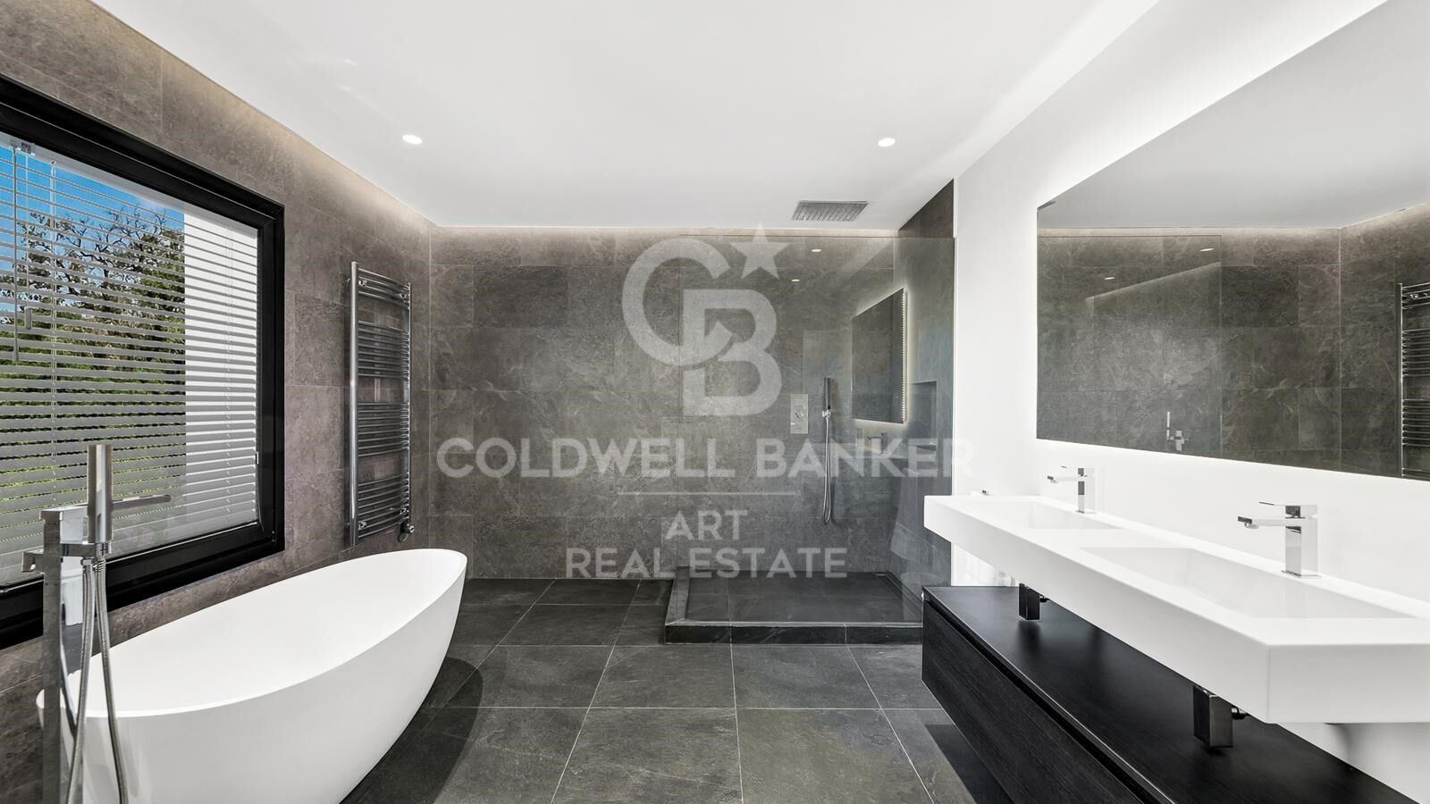 Upstairs, you'll find two spacious double bedrooms and a large family bathroom. Just a few steps up lies the breathtaking primary suite, occupying nearly 120m². It features a luxurious bathroom with a rain shower and freestanding bathtub, a large walk-in wardrobe, and a generous bedroom with dual-aspect panoramic views, a Juliet balcony, and a private sun terrace.