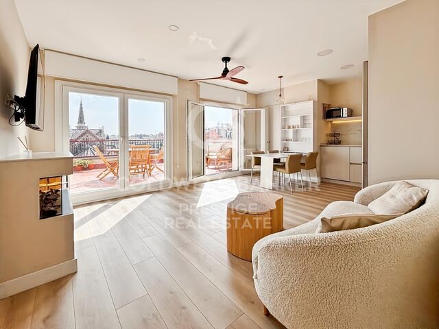 Welcome to an oasis of luxury and elegance in the heart of Barcelona! We present this exclusive property, a unique jewel that fuses history and modernity in every corner. Located in one of the iconic palaces on Avenida Tibidabo, this 209 m2 penthouse is a true architectural masterpiece. The neoclassical building, which dates back to 1914, has been meticulously restored to its original splendor. When you step inside, the exquisiteness is palpable in every detail. The refurbishment and decoration have been executed with exquisite taste, selecting the finest materials and taking meticulous care in every aspect. From the impressive living-dining room, with its enveloping atmosphere and fireplace, to the magnificent 50 m2 terrace that offers panoramic views ranging from the glittering sea to the majesty of the mountains. The kitchen is a masterpiece in itself, with an office space that invites culinary creativity. The Oval Office, with 9-metre high ceilings, is simply spectacular, a perfect corner for inspiration and concentration. In the sleeping wing, there are two bedrooms, each with its own en suite. The master bedroom, a true sanctuary, includes a dressing room that will delight fashion and style lovers. This property is offered on a seasonal rental basis, providing an unparalleled living experience in Barcelona. The price includes all utilities, as well as a concierge, maintenance, and cleaning service, guaranteeing unparalleled comfort. Immerse yourself in luxury, comfort, and history in this one-of-a-kind penthouse. Don't miss the opportunity to live an unforgettable experience in the heart of Barcelona. #ref:CBES2053
