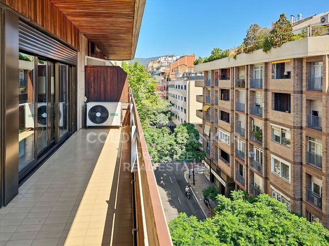 Coldwell Banker Anteris presents this fantastic renovated penthouse with a private rooftop terrace, located on one of the most sought-after and quiet streets in the neighborhood, surrounded by shops and all kinds of services. Located on the top floor of a classic 1900s building with an elevator, this bright apartment offers 131 m² of floor space plus 41 m² of private terrace, with a layout designed for comfort, natural light, and elegance. The high ceilings and wooden beams add warmth and character, while the natural parquet floors and exterior woodwork ensure comfort and style. The living-dining room stands out for its spaciousness and brightness thanks to its four balconies, and the open-plan kitchen is fully equipped with built-in appliances and a small wine cooler. All this with the added character provided by the wooden beams on the ceiling. The sleeping area includes a double bedroom with en-suite bathroom and the master bedroom with en-suite bathroom, dressing room, and an exterior balcony with morning light. In addition, there is an architect's plan to convert the property into three bedrooms, providing flexibility for future owners. Its features include renovated facilities, ducted air conditioning, wooden beamed ceilings, natural parquet flooring, and double-glazed exterior windows, ensuring comfort, efficiency, and style. Thanks to its privileged location, just a few steps from shops, cafes, local markets, and public transportation, this penthouse is ideal both as a ready-to-move-in home and as an excellent investment in a well-established neighborhood with high demand in Barcelona. A home with light, design, and character that combines the exclusivity of a private terrace with the convenience of living in the heart of the city. Contact us and schedule your visit! #ref:AV255