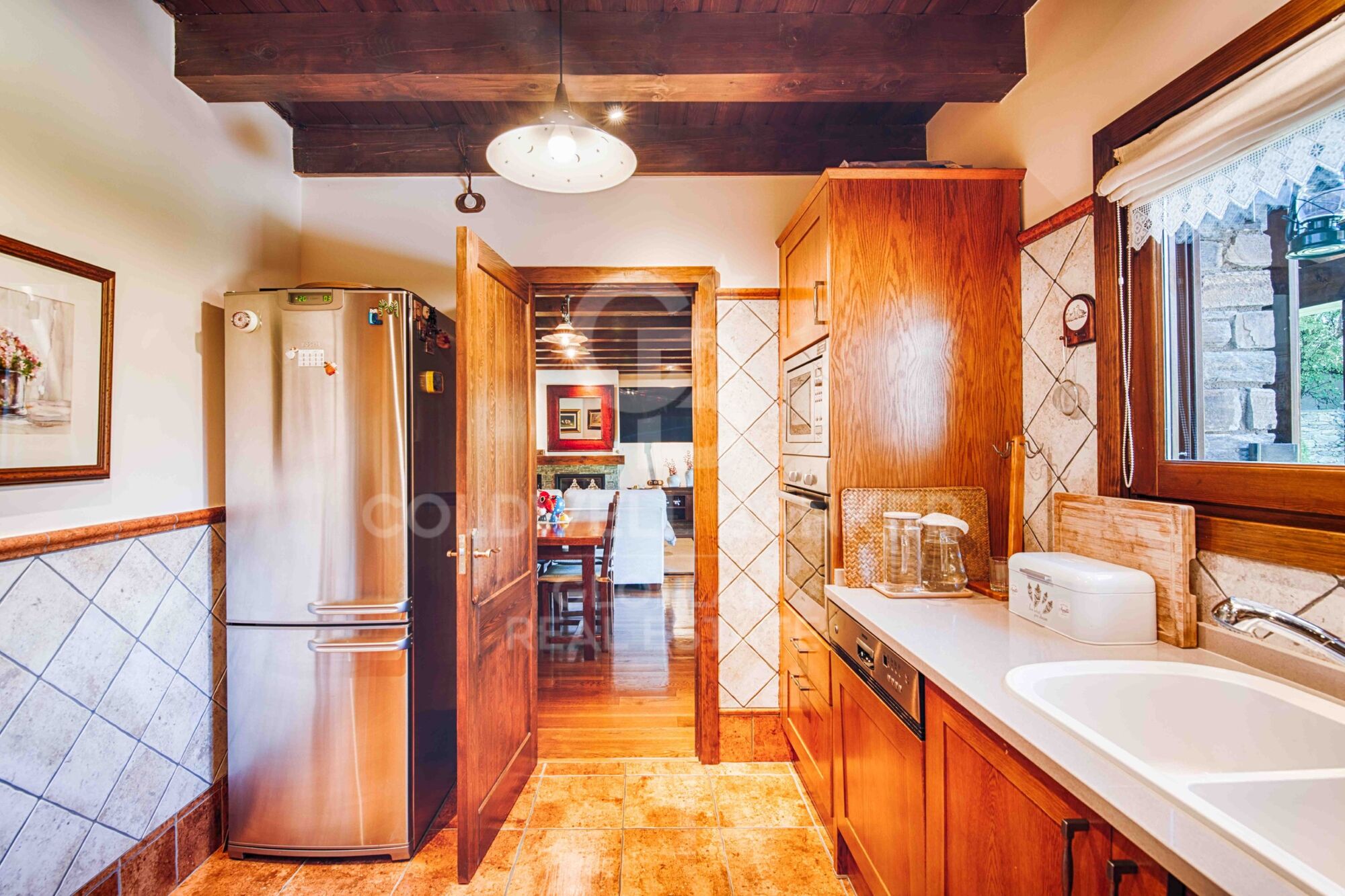 Descubre esta impresionante joya modernista ubicada en la prestigiosa zona alta de Vallvidrera. Con más de 370 m² construidos, distribuidos en tres plantas y una azotea, esta extraordinaria propiedad ofrece vistas panorámicas incomparables de la ciudad de Barcelona y el mar Mediterráneo. Al entrar en la parcela de 1.231 m², serás recibido por un majestuoso camino rodeado de árboles que conduce a la casa. La bifurcación del camino te lleva directamente a la entrada principal o al parking, que también ofrece un acceso inferior a la vivienda. A mitad de camino hacia la entrada principal, encontrarás una encantadora caseta, anteriormente un aparcamiento con foso, ahora transformado en una zona de almacenamiento y bodega. Con aproximadamente 30 m² distribuidos en dos plantas, esta estructura podría convertirse fácilmente en una acogedora casa de invitados. Al ingresar por la fachada principal, una sala de estar te da la bienvenida con azulejos modernistas, una chimenea decorada con elementos tradicionales y vidrieras originales en tonos verdes. A la izquierda, se encuentra el comedor, y a la derecha, un despacho con biblioteca que conduce a una escalera señorial. Desde esta zona, también se accede a la cocina, que conecta con una amplia sala de estar equipada con un lavabo y acceso al parking para dos coches y al jardín. En la planta superior, encontrarás un pequeño estudio, una sala y una habitación con lavabo. En el nivel más alto, la casa dispone de cuatro habitaciones y dos lavabos, uno de ellos en suite. Toda la planta mantiene su estilo modernista con características distintivas como vidrieras, molduras y suelos hidráulicos. En la parte superior de la casa, dos terrazas una lateral y una panorámica ofrecen vistas impresionantes de Barcelona y el mar. Sobre Vallvidrera Vallvidrera es un encantador vecindario ubicado en las colinas de la sierra de Collserola, al suroeste de Barcelona. Conocido por su entorno natural y tranquilo, ofrece un refugio ideal del bullicio de la ciudad, sin dejar de estar bien conectado con el centro de Barcelona a través del funicular y varias rutas de autobús. La zona es famosa por sus impresionantes vistas, senderos para caminatas y una rica historia que incluye numerosas casas modernistas. Vallvidrera también alberga el famoso Mirador de la Torre de Collserola, una torre de comunicaciones que ofrece una vista panorámica de la ciudad y sus alrededores. Este barrio combina la tranquilidad de la naturaleza con la comodidad de estar cerca de una metrópolis vibrante, haciendo de Vallvidrera un lugar muy codiciado para vivir. #ref:CB4413LL