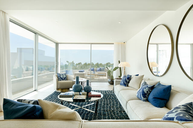 The main floor houses the social heart of the villa: a majestic 150 m² living room bathed in natural light, with direct access to a large panoramic terrace. At the end of this terrace there is an infinity pool of 14 x 6 meters, from where contemplating the sea becomes a daily experience. There is also a designer kitchen equipped with the latest technology, perfect for lovers of gastronomy and elegance.