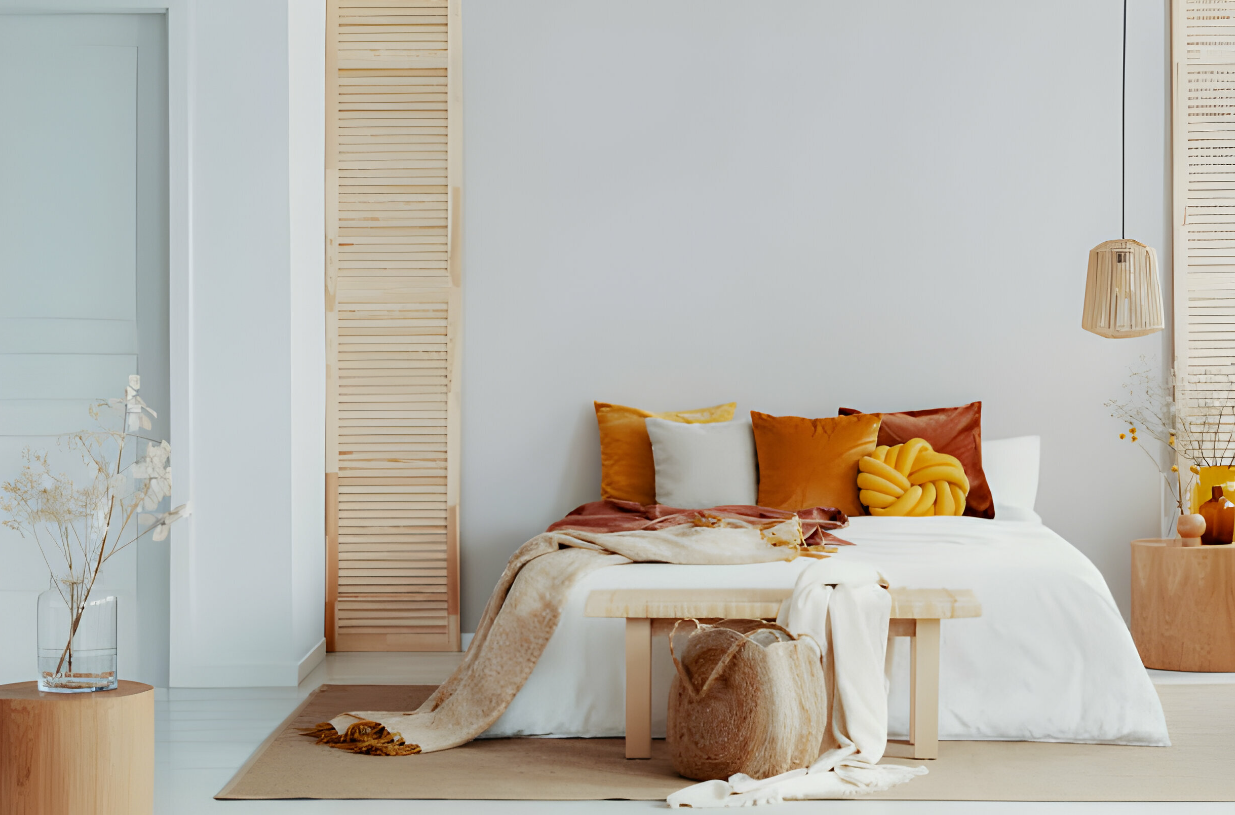 - Neutral colors: The color palette is based on neutral tones such as white, beige, and brown. These colors create a calm and serene base that allows other decorative elements to stand out.