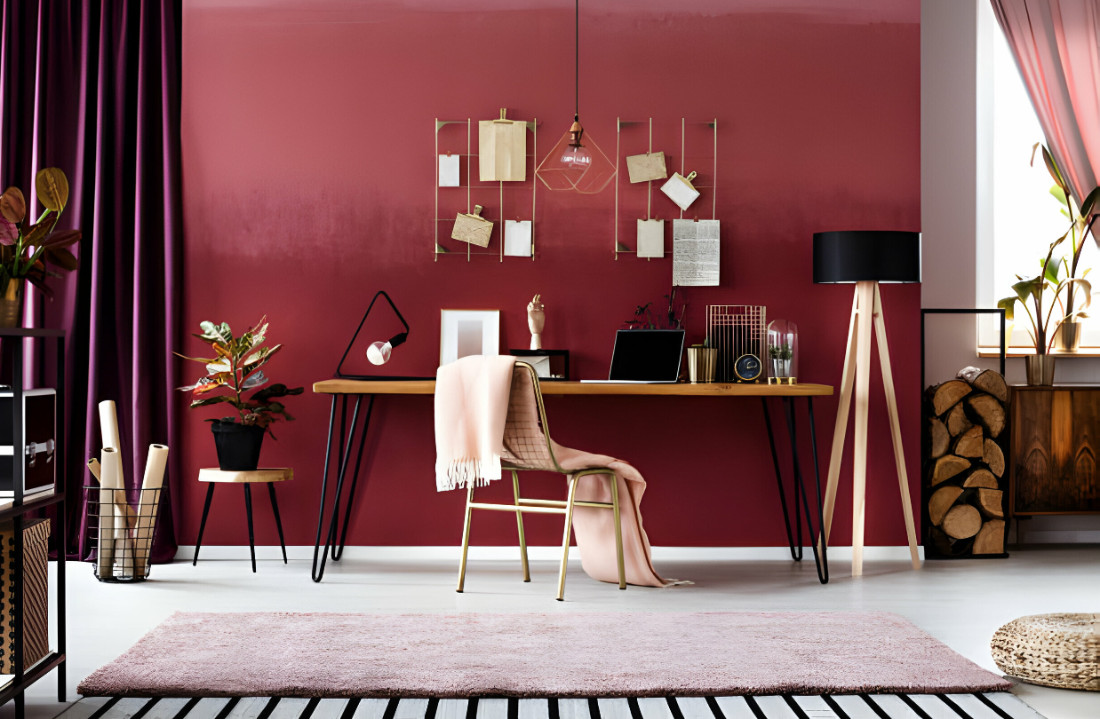 Just look at this workspace, where pink unfolds in various shades, from the lighter tones to the wall, which displays a deeper variant evoking the freshness of ripe raspberries. This renewed approach to pink conveys a sense of tranquility, elegance, and yet minimalism, adding a touch of delicacy and refinement to any environment. Undoubtedly, softened pink is gaining ground as a sophisticated and versatile choice in the world of interior design in the year 2024.