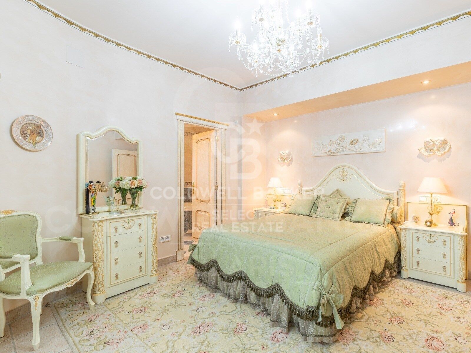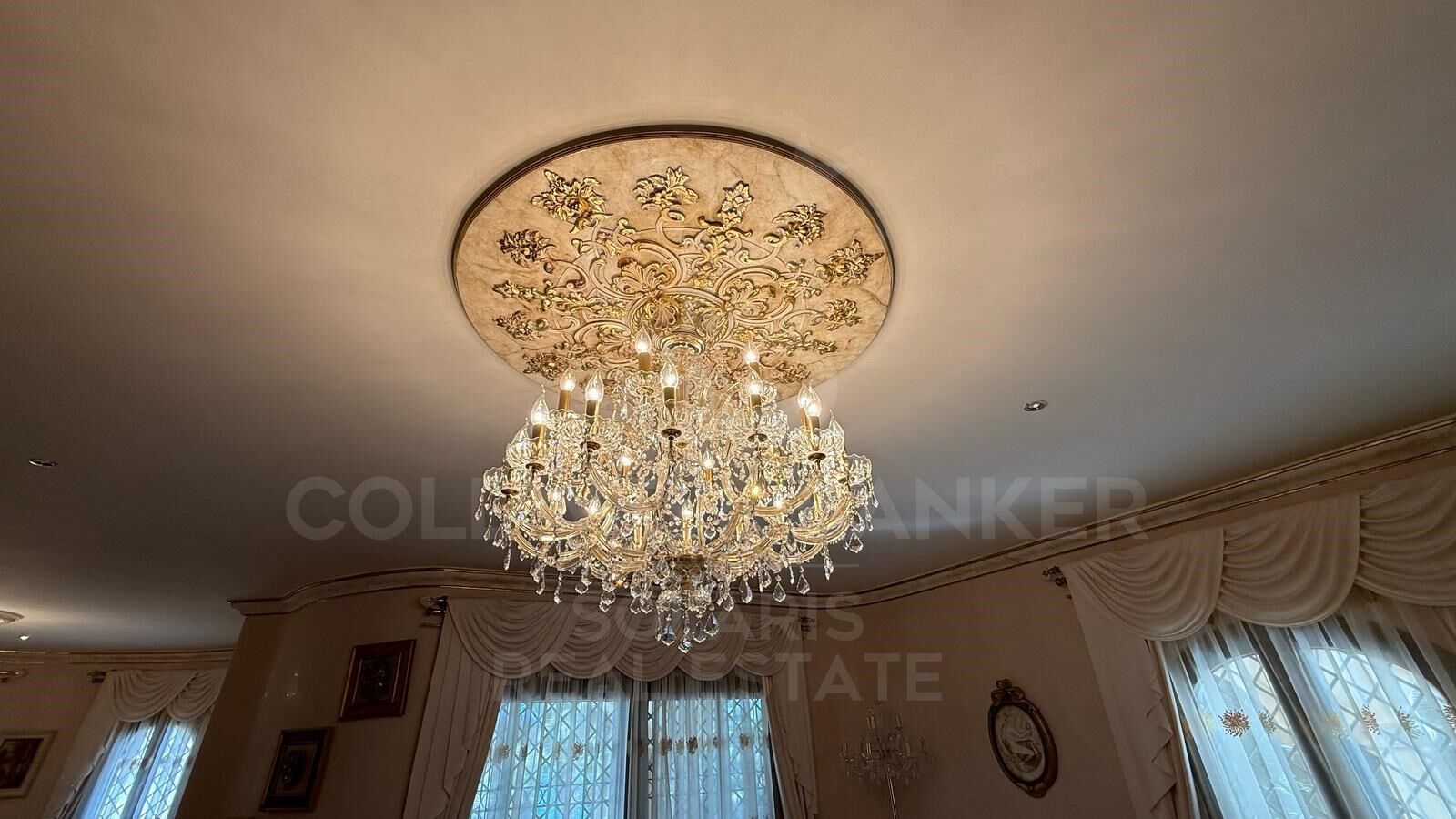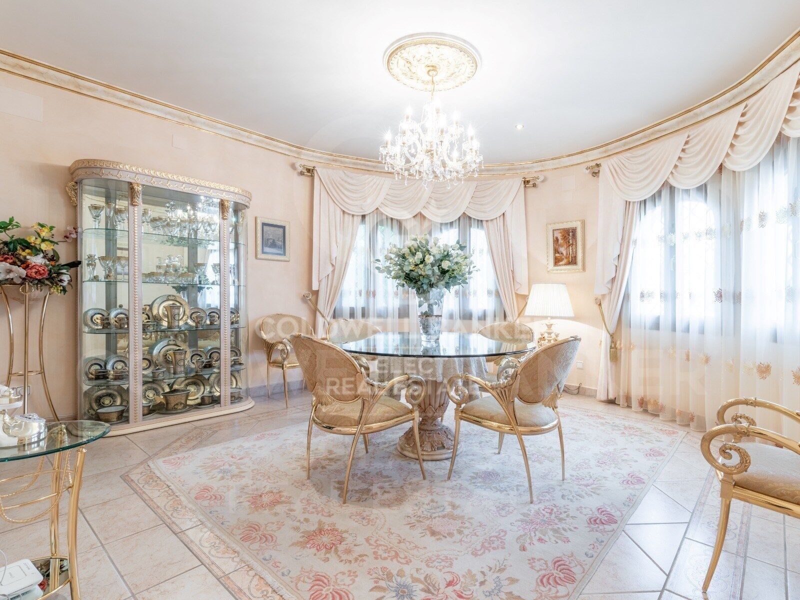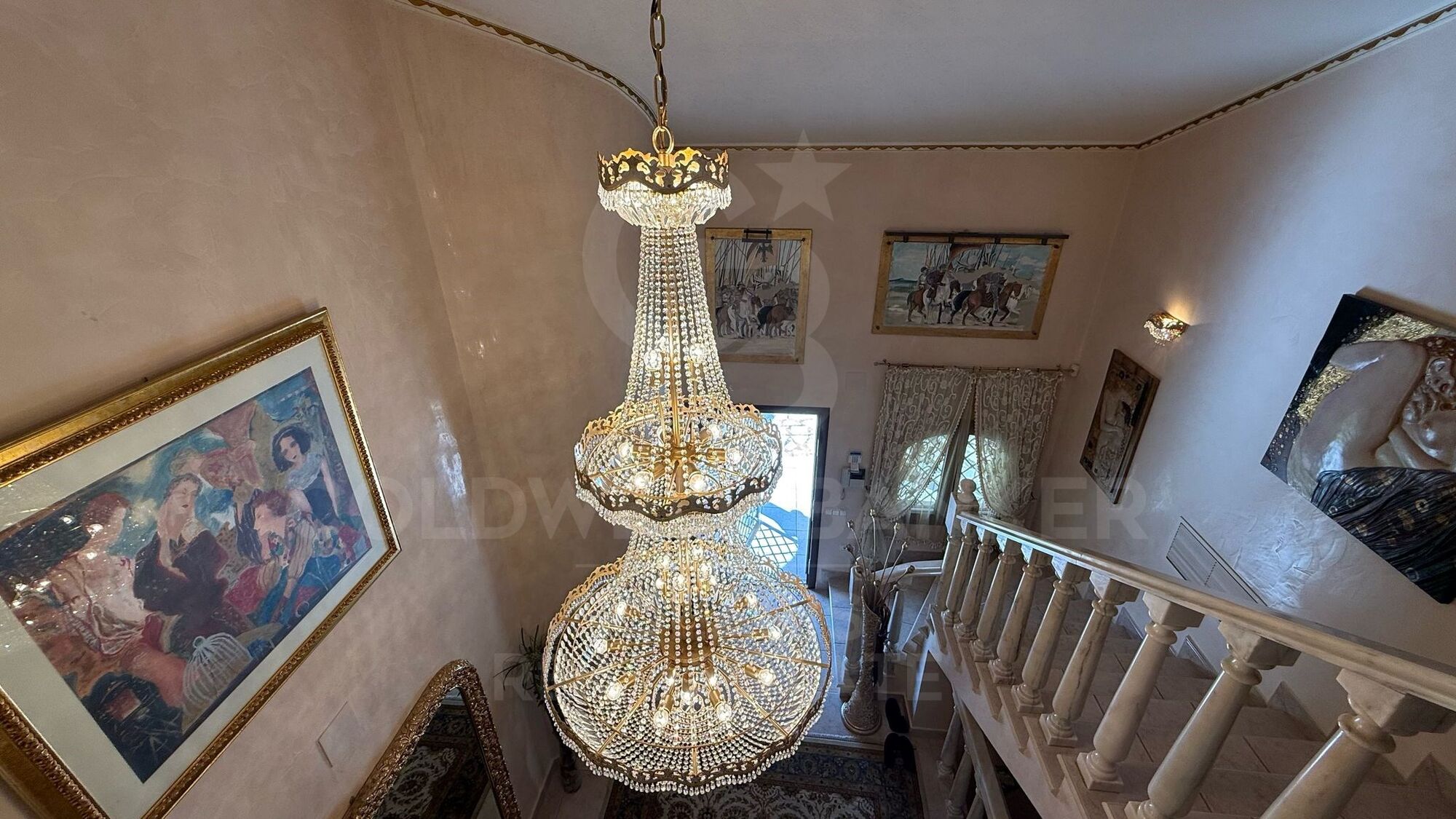 On the ground floor there is a spacious classic dining room with two large living areas, a carved marble fireplace and classic handmade furniture.