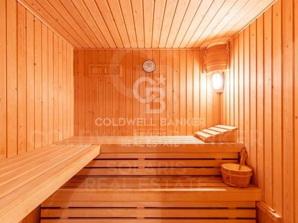 The house has a spa area with a bathroom with a hydromassage shower, a large sauna and a relaxation area with a bar.