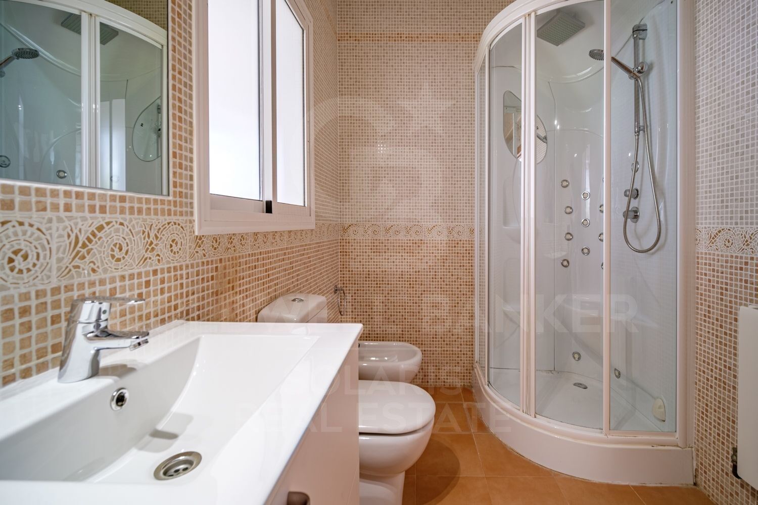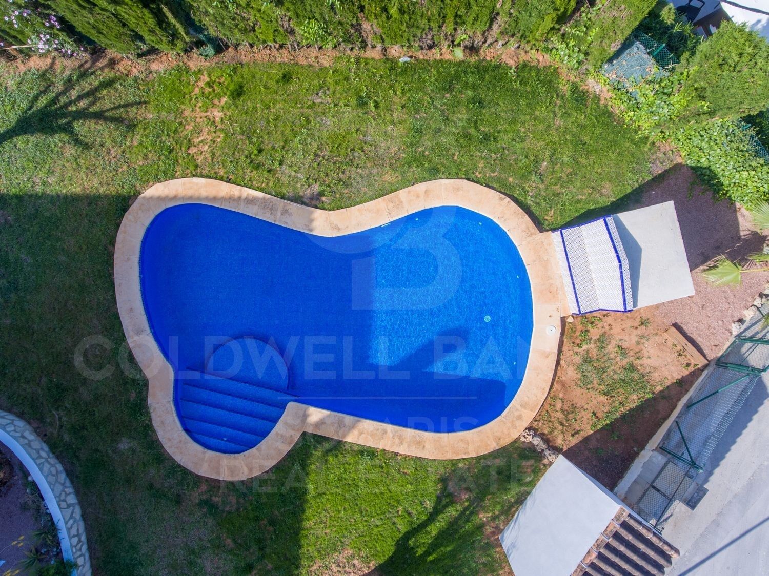 Going down the stairs we find 4 bedrooms with 2 bathrooms en suite and shared bathroom. From the ground floor there is access to the garden and pool area.