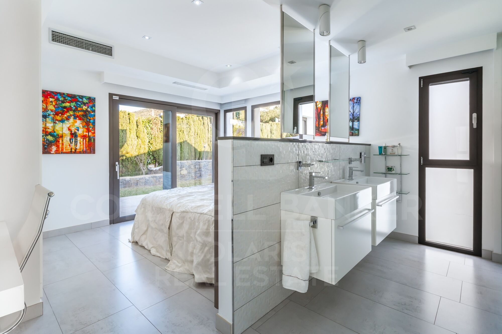 Villa da Vinci incorporates state-of-the-art technology, including a Loxone home automation system, Sonos surround sound and KXN system, for total control of the home from anywhere, charging point for electric vehicles and 18Kw single floor with storage batteries. In addition, it has air conditioning and individual hot/cold heating, guaranteeing absolute comfort in all seasons.
