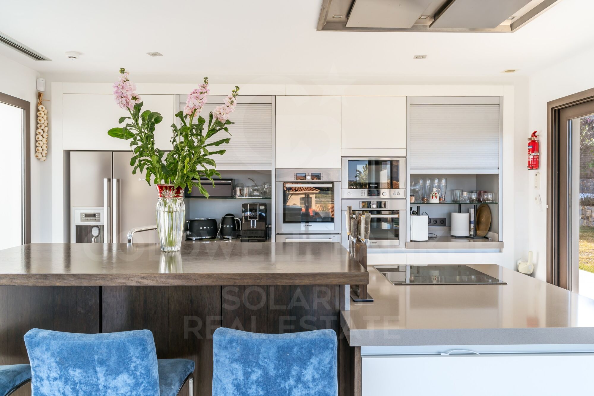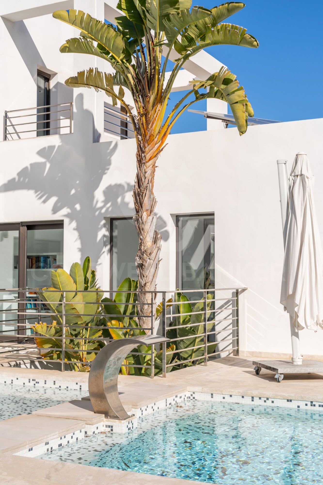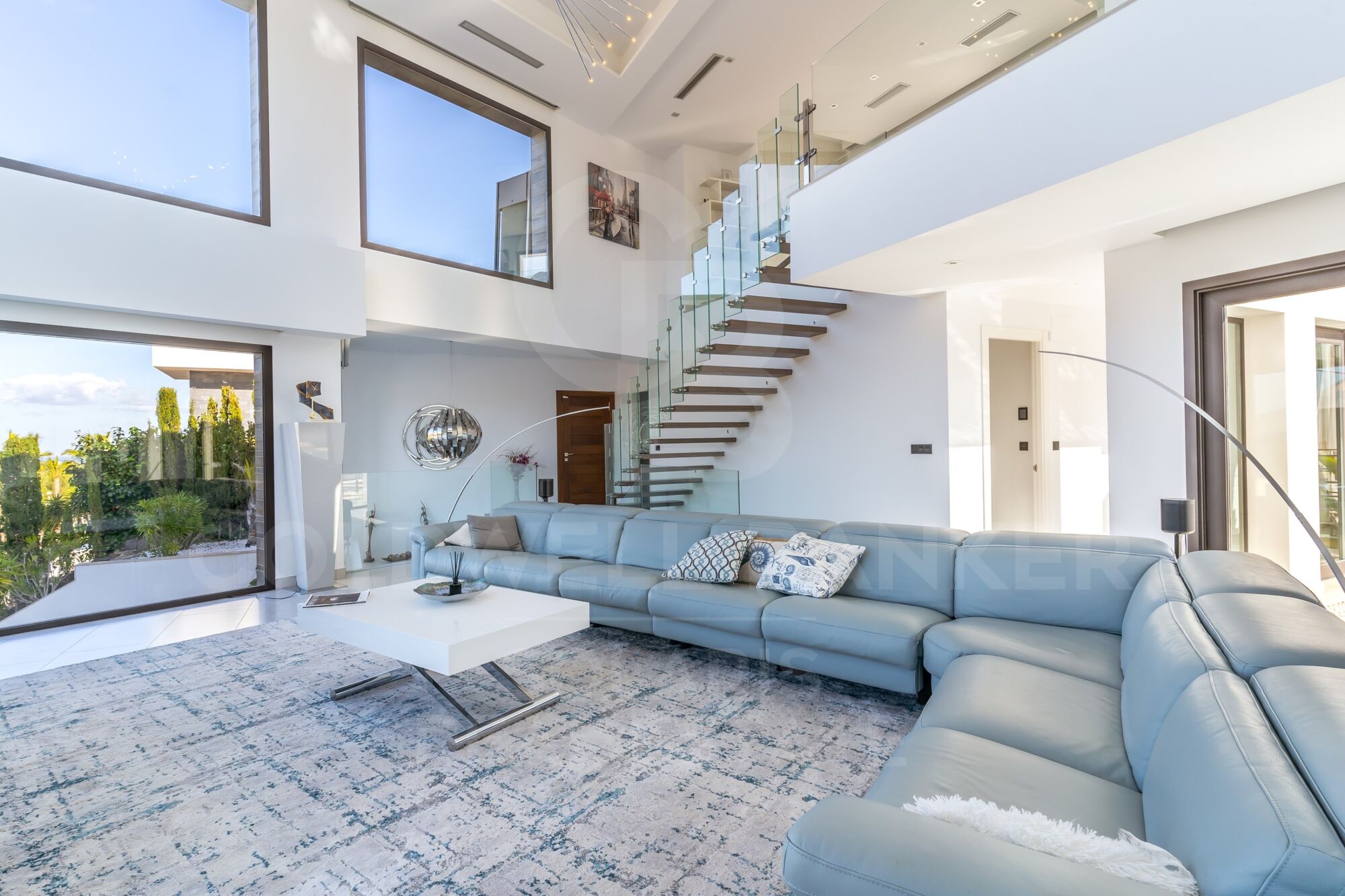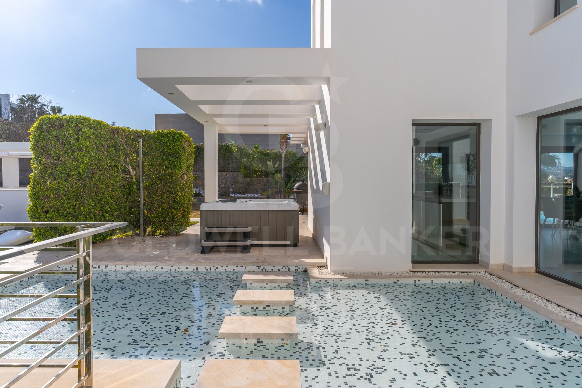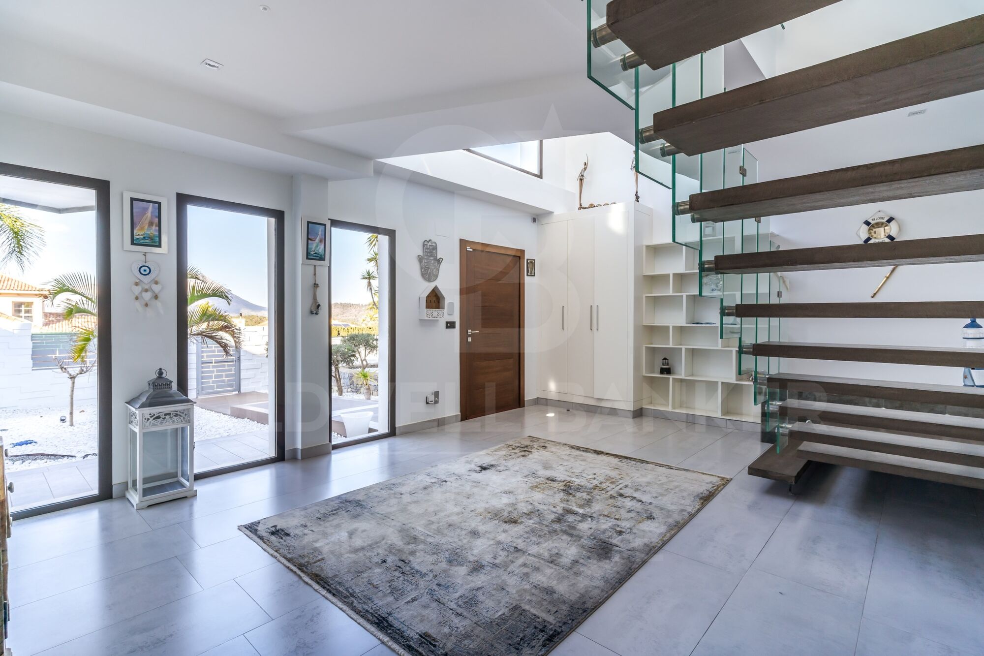 The villa also has an office on the upper level, overlooking the spectacular living room, as well as a private garage, storage room and fitted wardrobes, which maximise the functionality of the property. Its modern design and exquisite decoration make it an architectural gem, with a panoramic orientation that allows you to enjoy unobstructed views and abundant sunlight throughout the day.