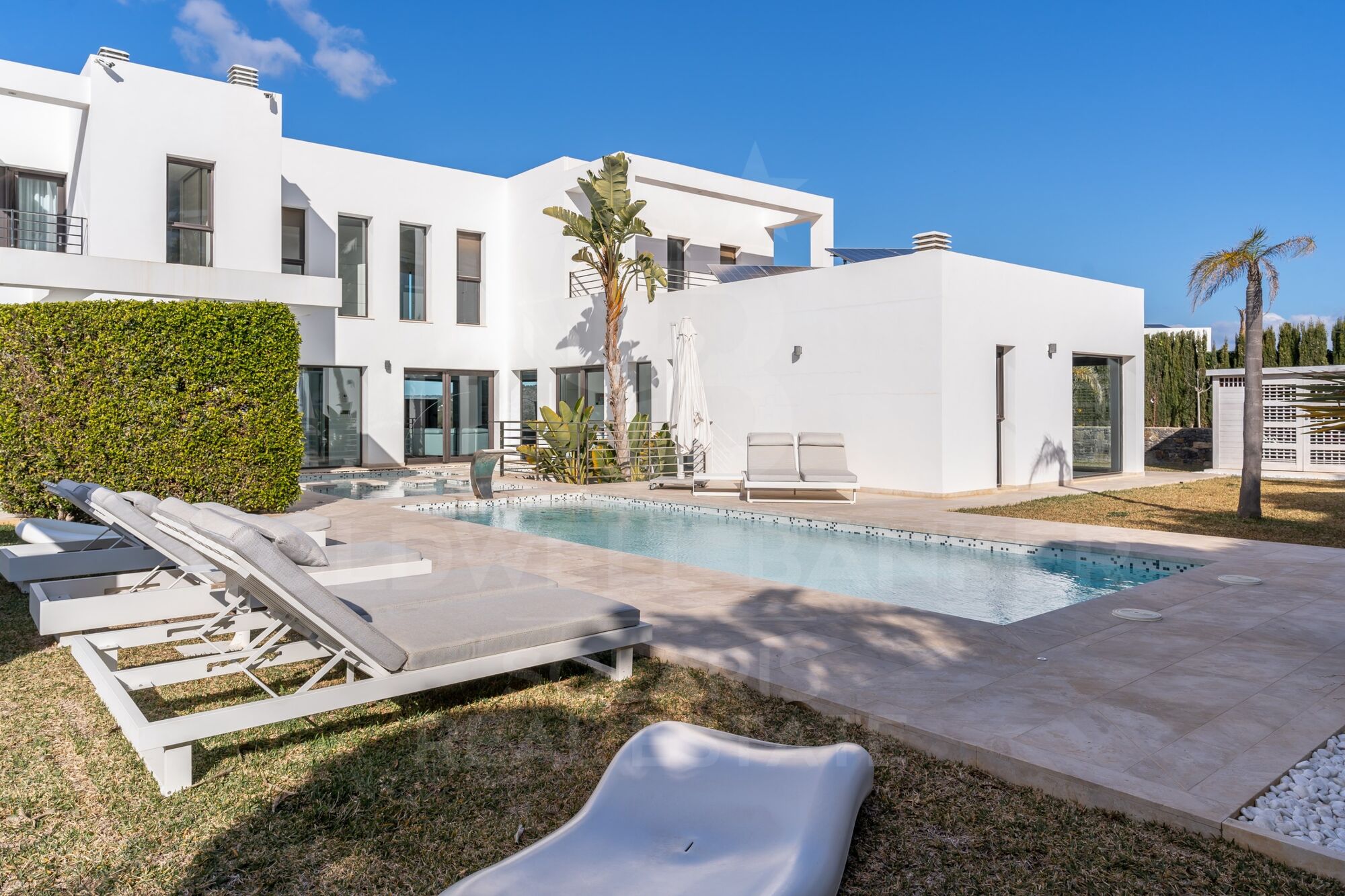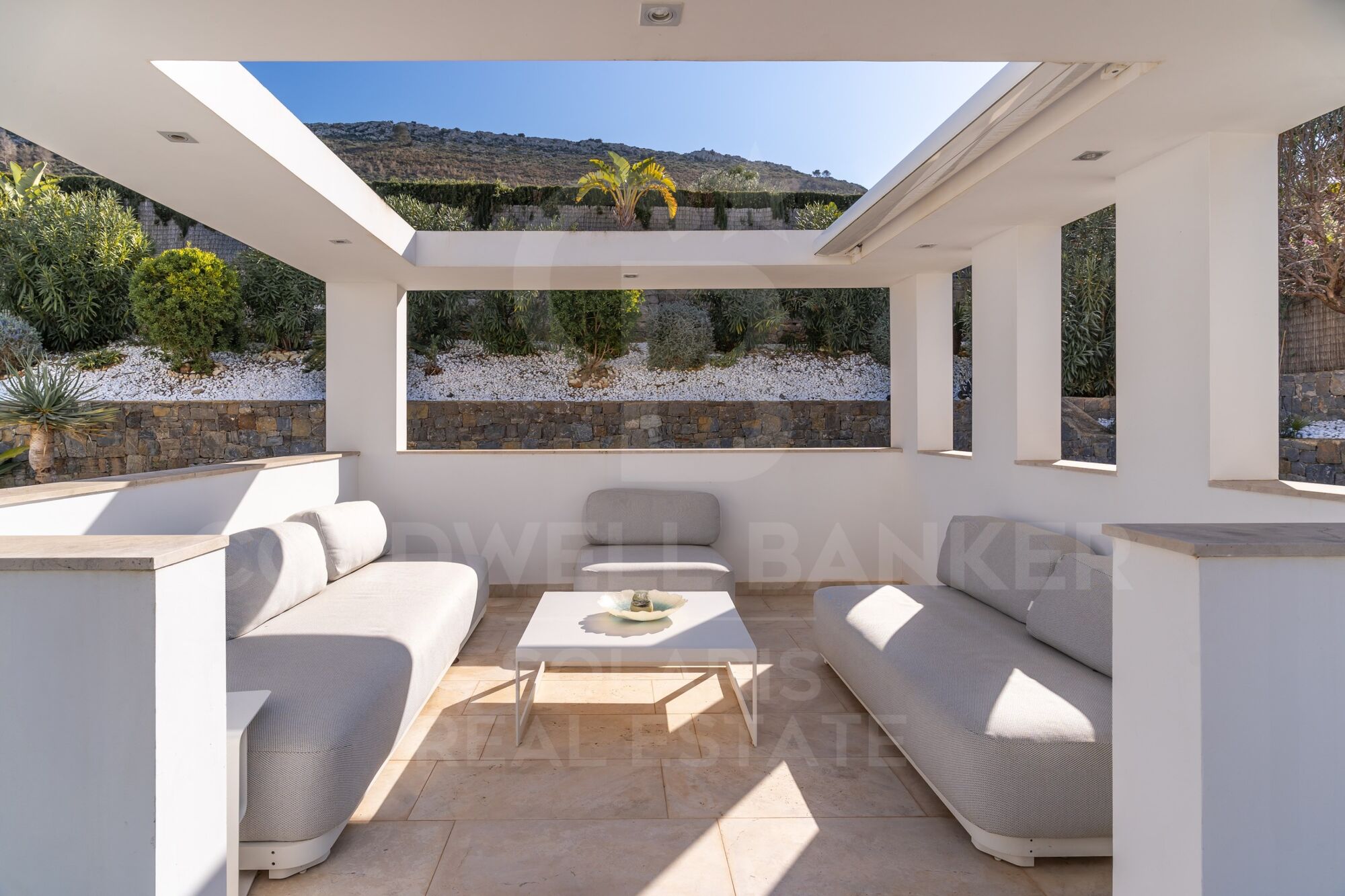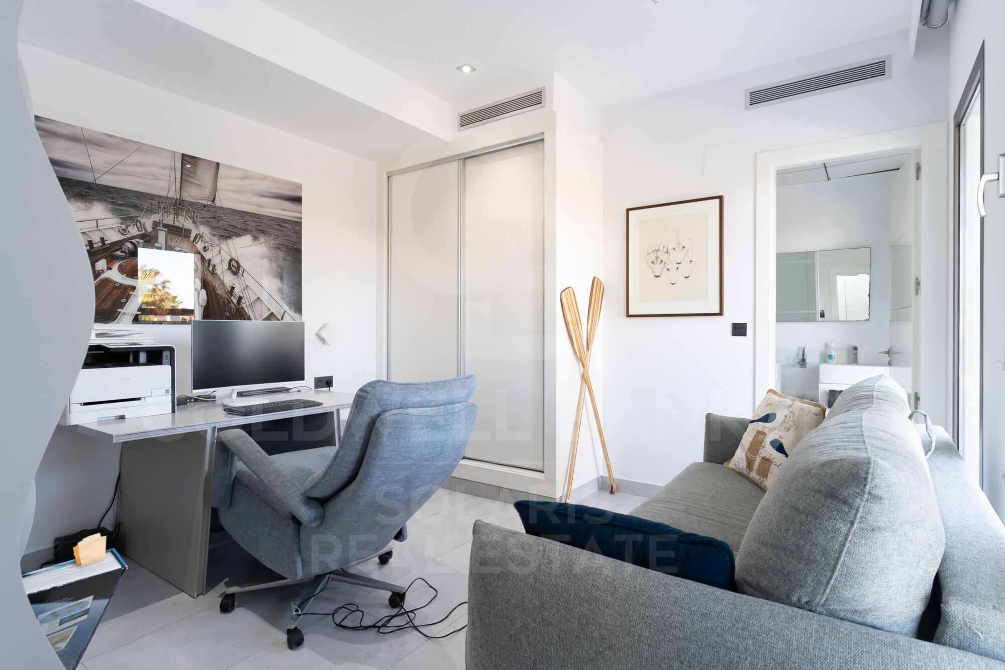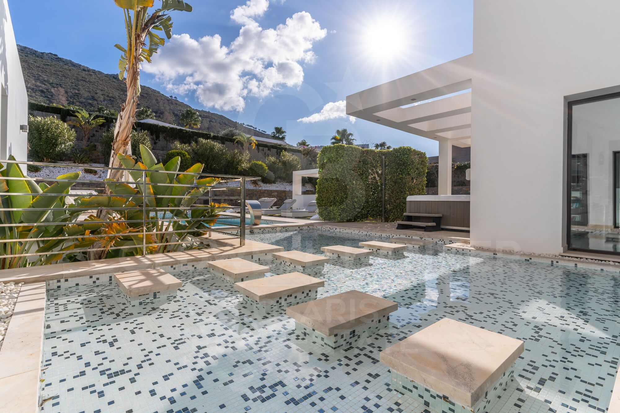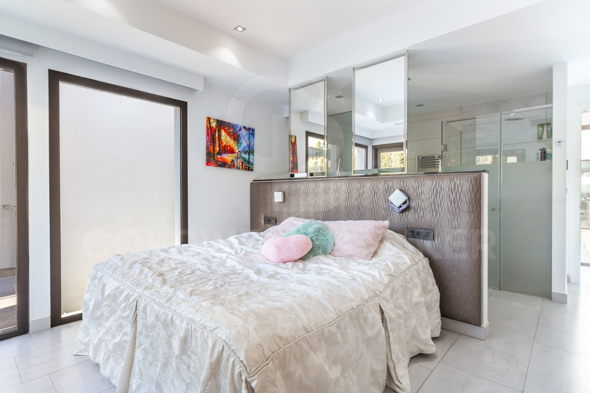 The villa also has an office on the upper level, overlooking the spectacular living room, as well as a private garage, storage room and fitted wardrobes, which maximise the functionality of the property. Its modern design and exquisite decoration make it an architectural gem, with a panoramic orientation that allows you to enjoy unobstructed views and abundant sunlight throughout the day.