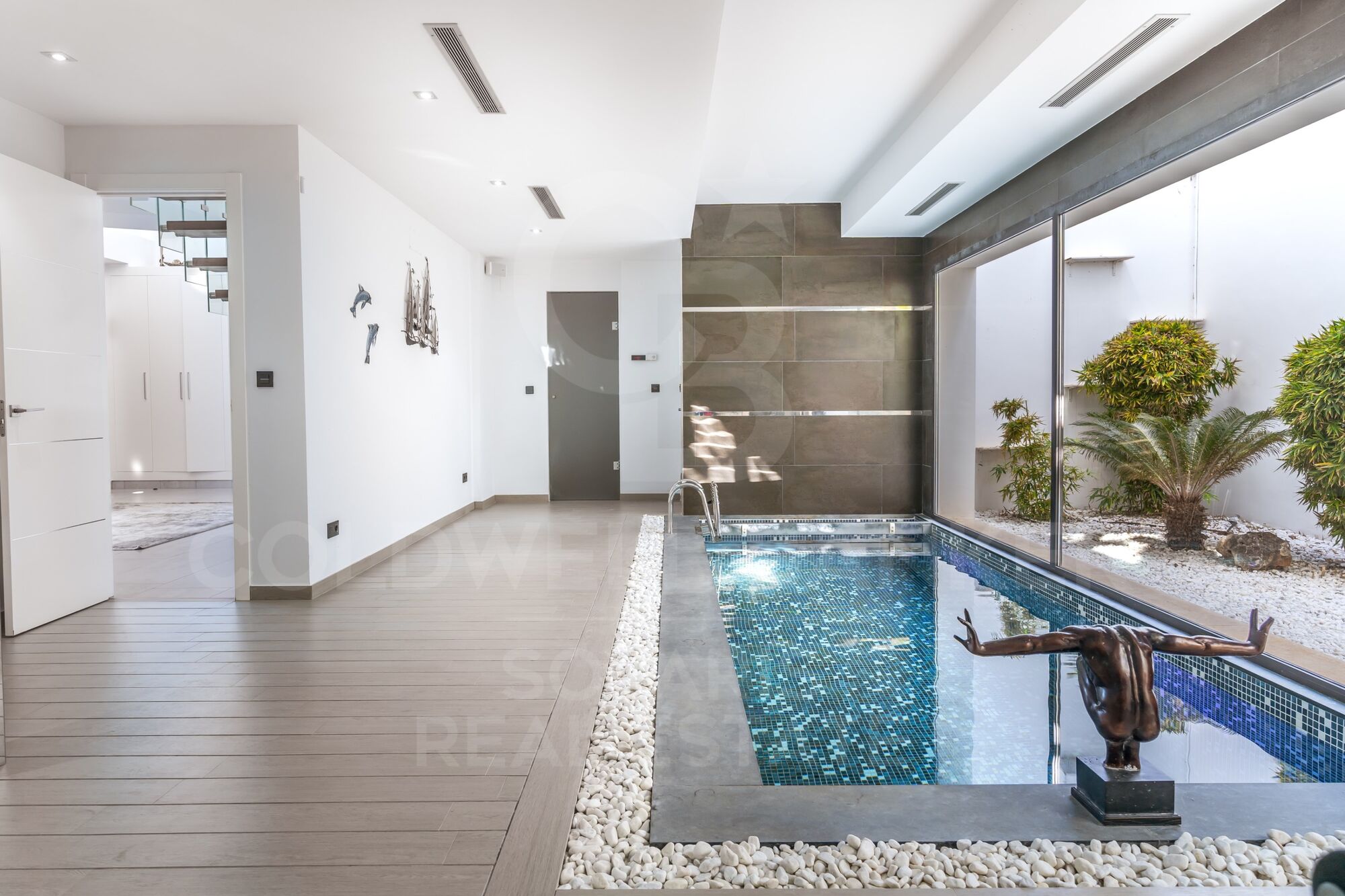The exterior of Villa da Vinci is a real oasis. The property features two impeccably designed outdoor pools, each strategically oriented (northwest and south), plus an outdoor Jacuzzi that promises moments of relaxation under the stars. The carefully designed chillout area is the perfect place to disconnect and enjoy the tranquillity that this exclusive property offers.
