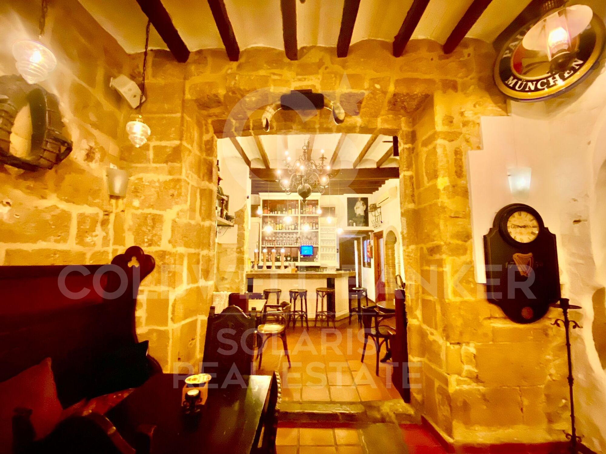 Actualmente, el local funciona como un bar con una atmósfera cálida y acogedora, gracias a sus dos amplios salones con techos altos que aportan luminosidad y sensación de amplitud. Cuenta con dos accesos independientes que facilitan la circulación y el flujo de clientes, así como un patio interior que ofrece un espacio al aire libre muy valorado en la zona histórica. Además, dispone de un vestíbulo o recepción independiente que conecta con las plantas superiores, pensadas para ser adaptadas a diversas configuraciones residenciales o turísticas.