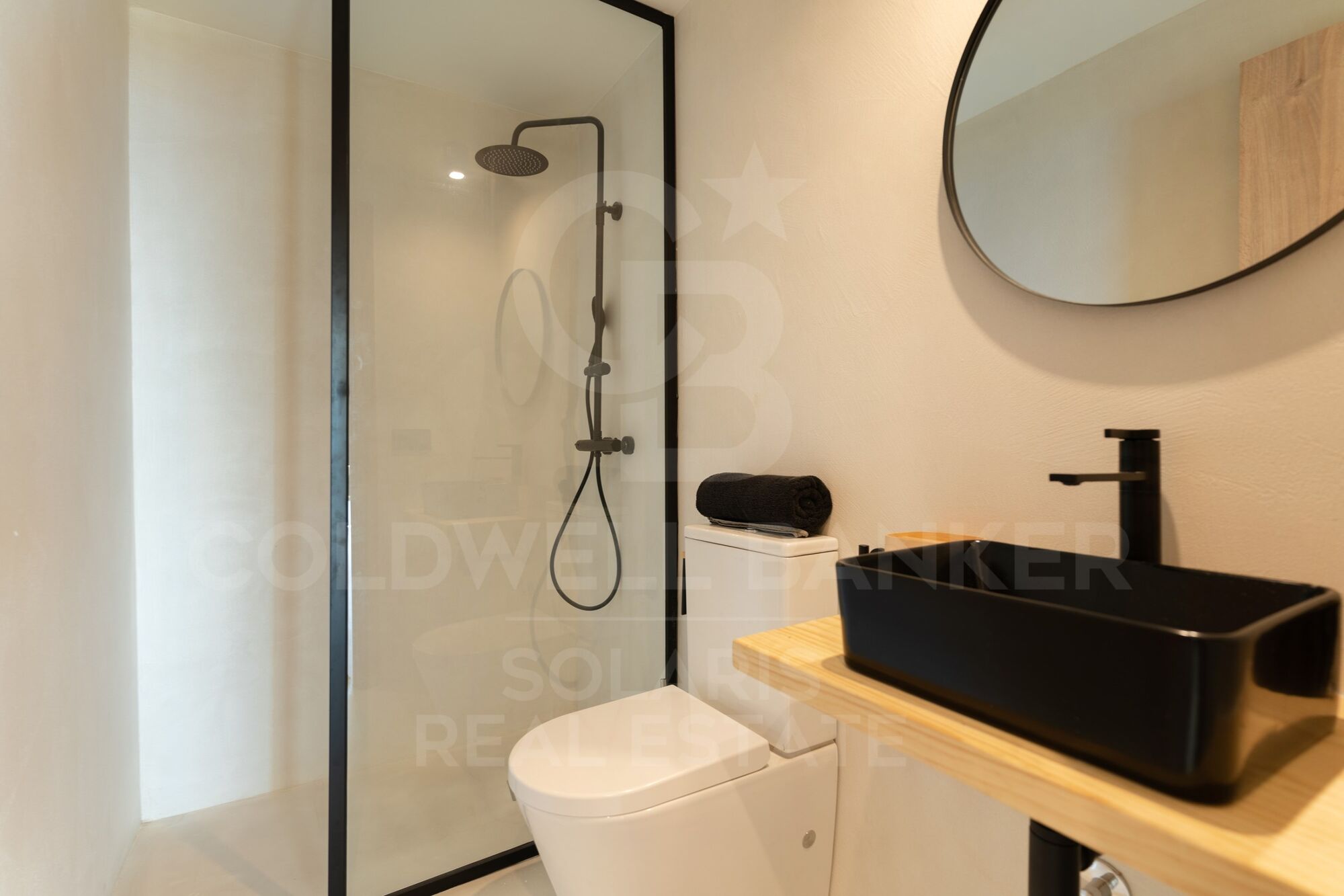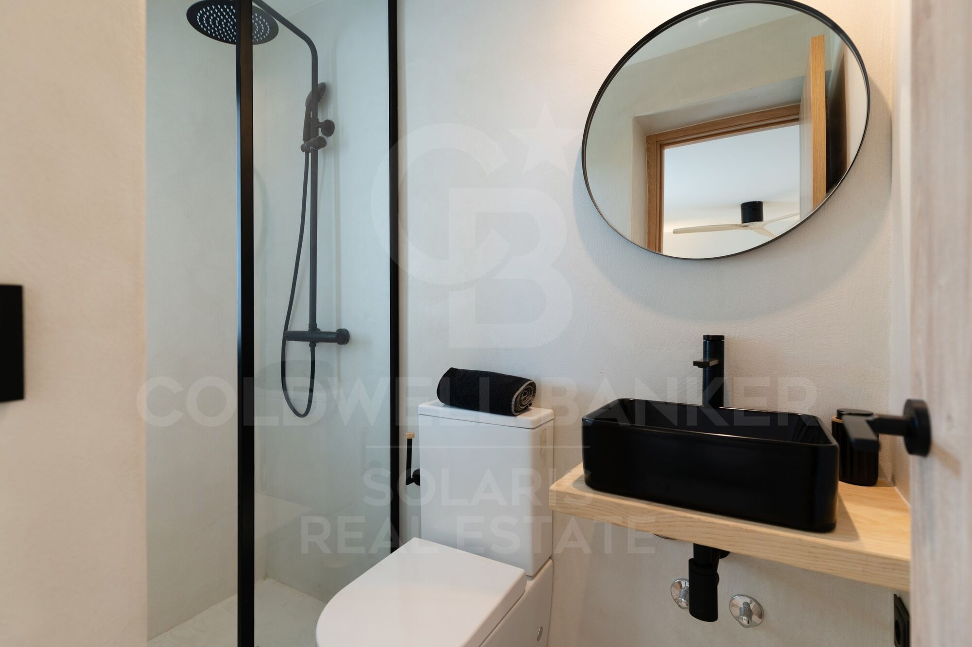 Descending the main staircase, you will find four double bedrooms, each with its own en-suite bathroom equipped with rain showers and contemporary finishes. These bedrooms, with direct access to the garden and pool, promise privacy and serenity to all residents. Underfloor heating and comprehensive air conditioning ensure optimal comfort throughout the year, while wooden ceiling fans add a touch of natural elegance.