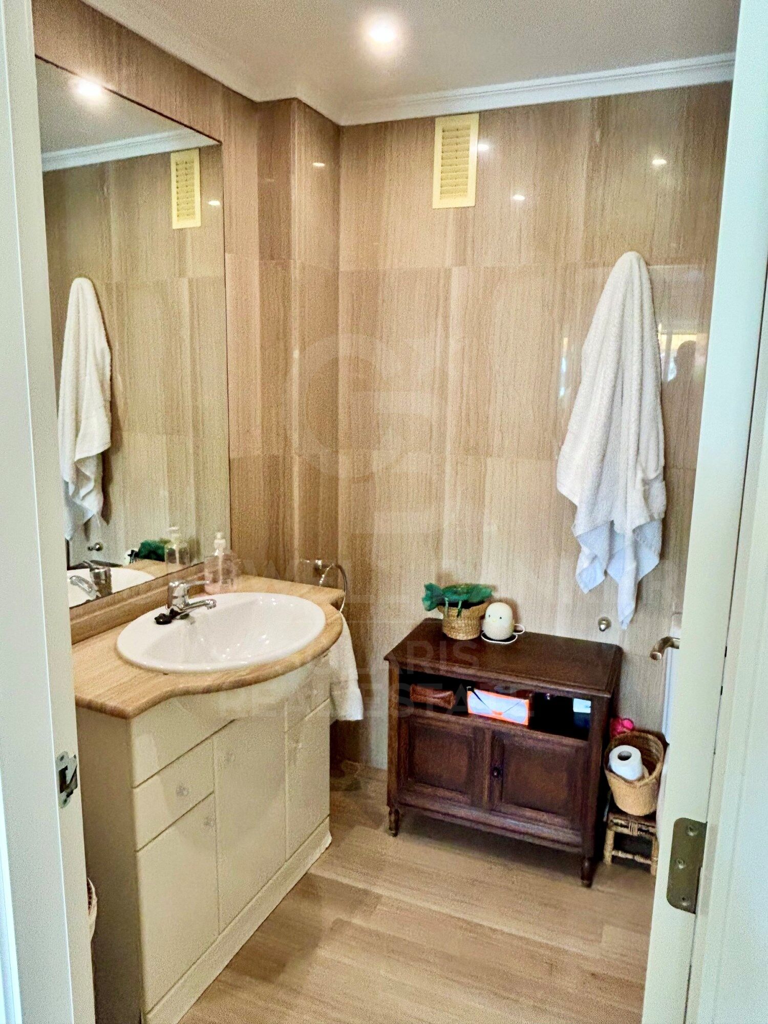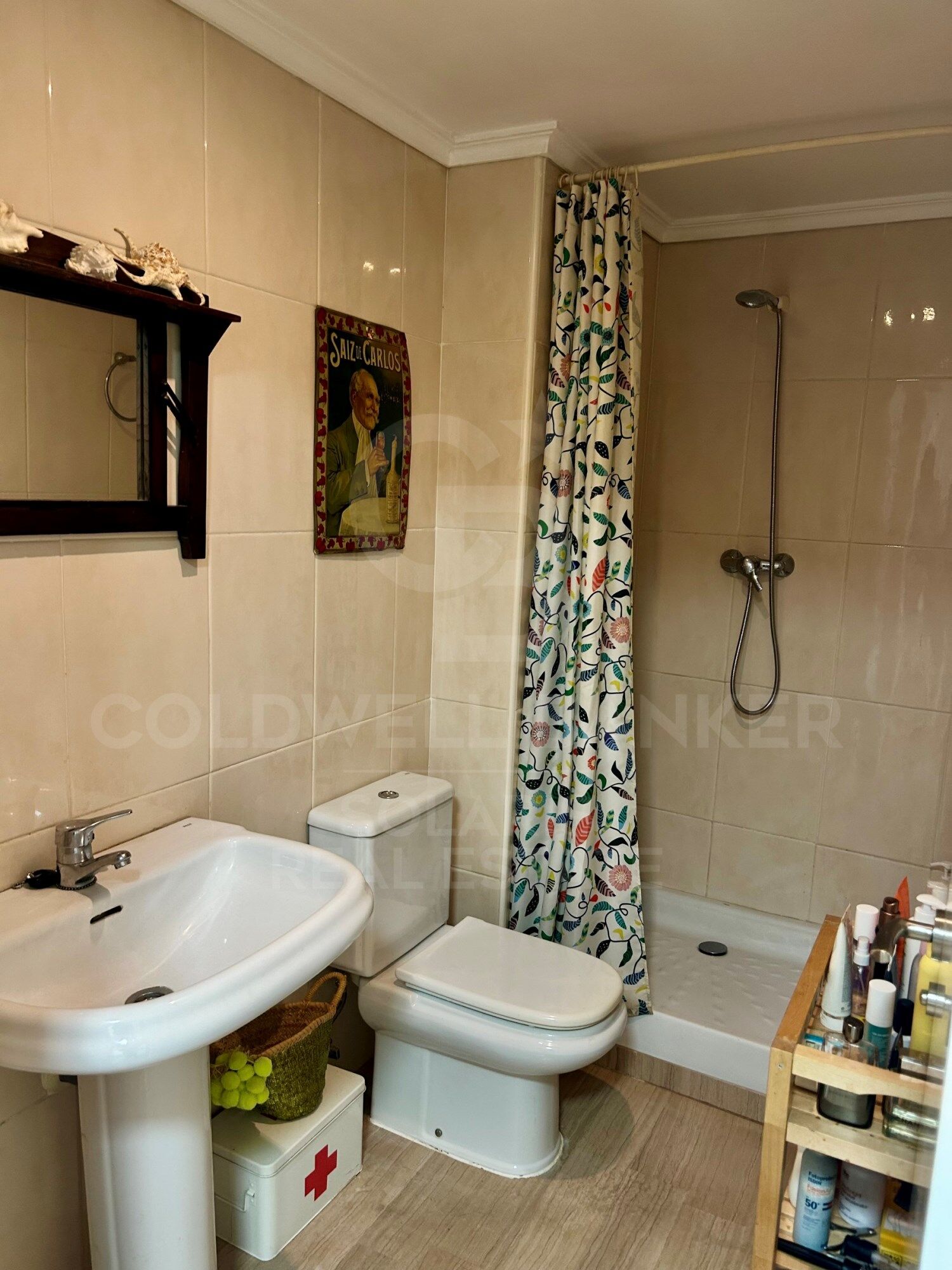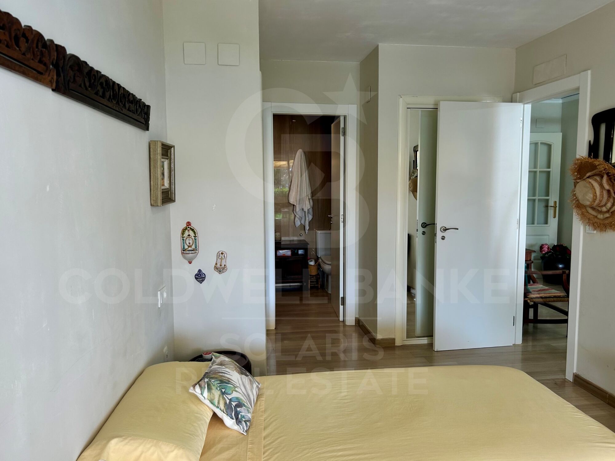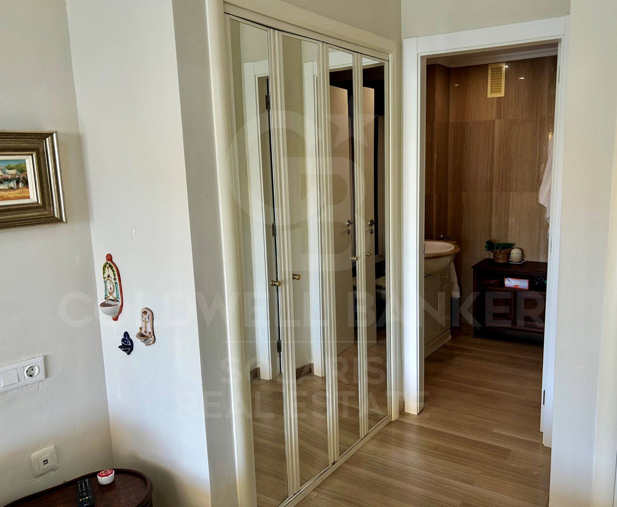Located on the ground floor, it has a spacious and bright terrace that offers stunning views of the sea from the entrance of the house, the living room and one of its master bedrooms. Designed for those looking for quality and comfort, it offers 2 double bedrooms, one of them en-suite, 2 full bathrooms, separate kitchen with auxiliary storage room and a living-dining room with direct access to the terrace. Double glazing Climalit and electric blinds