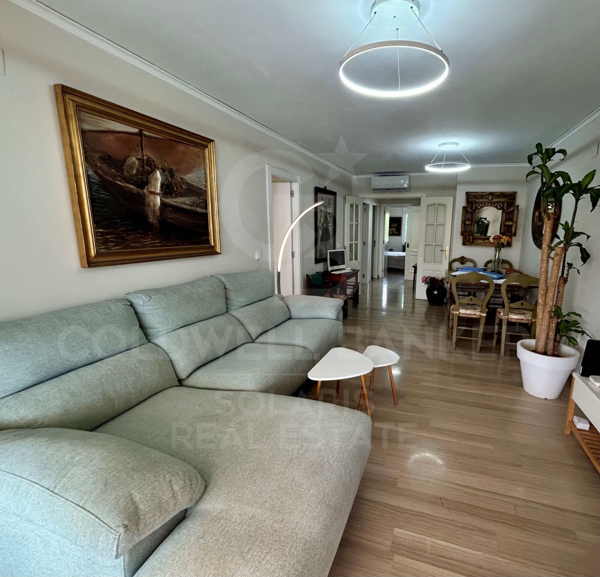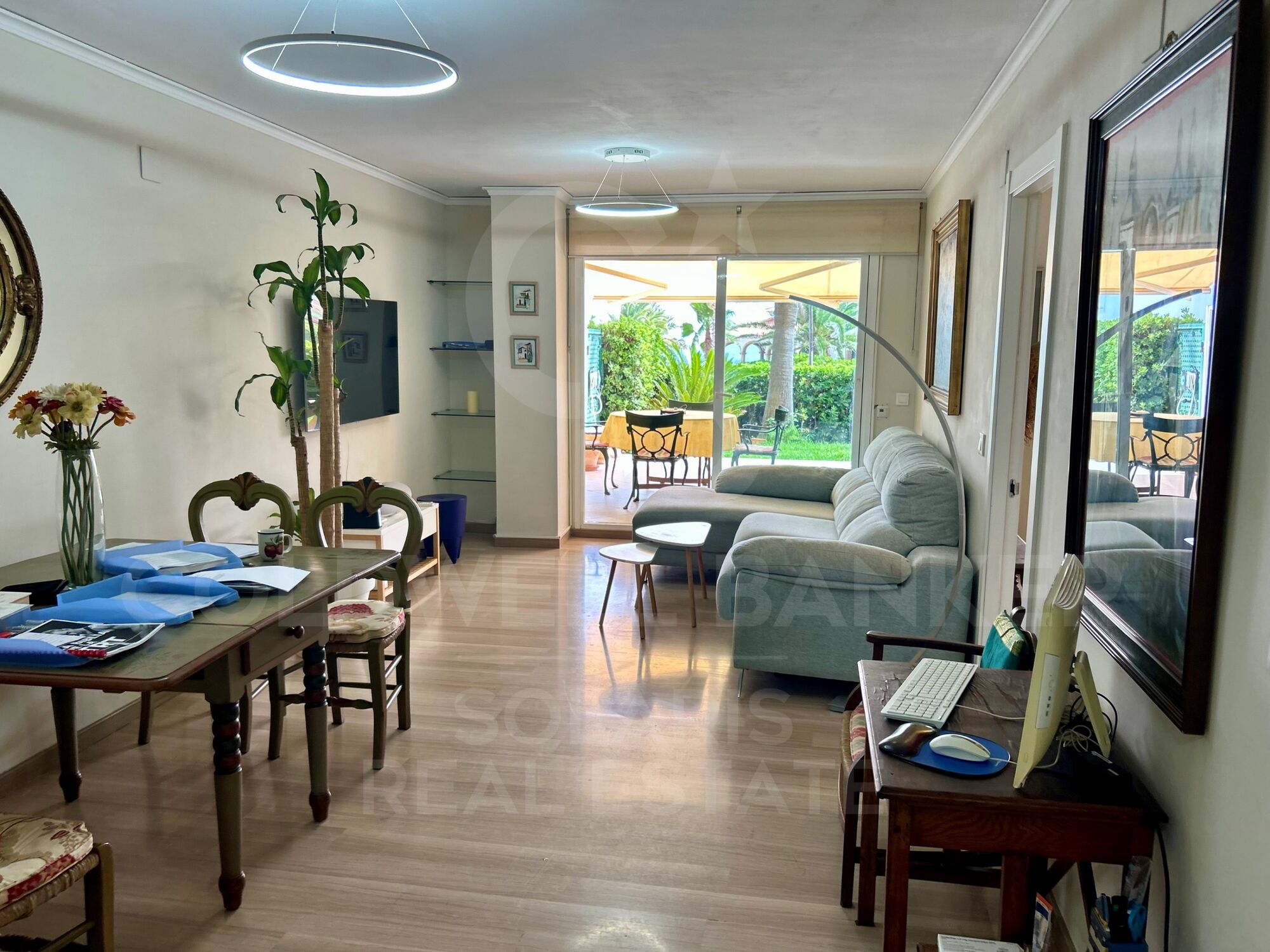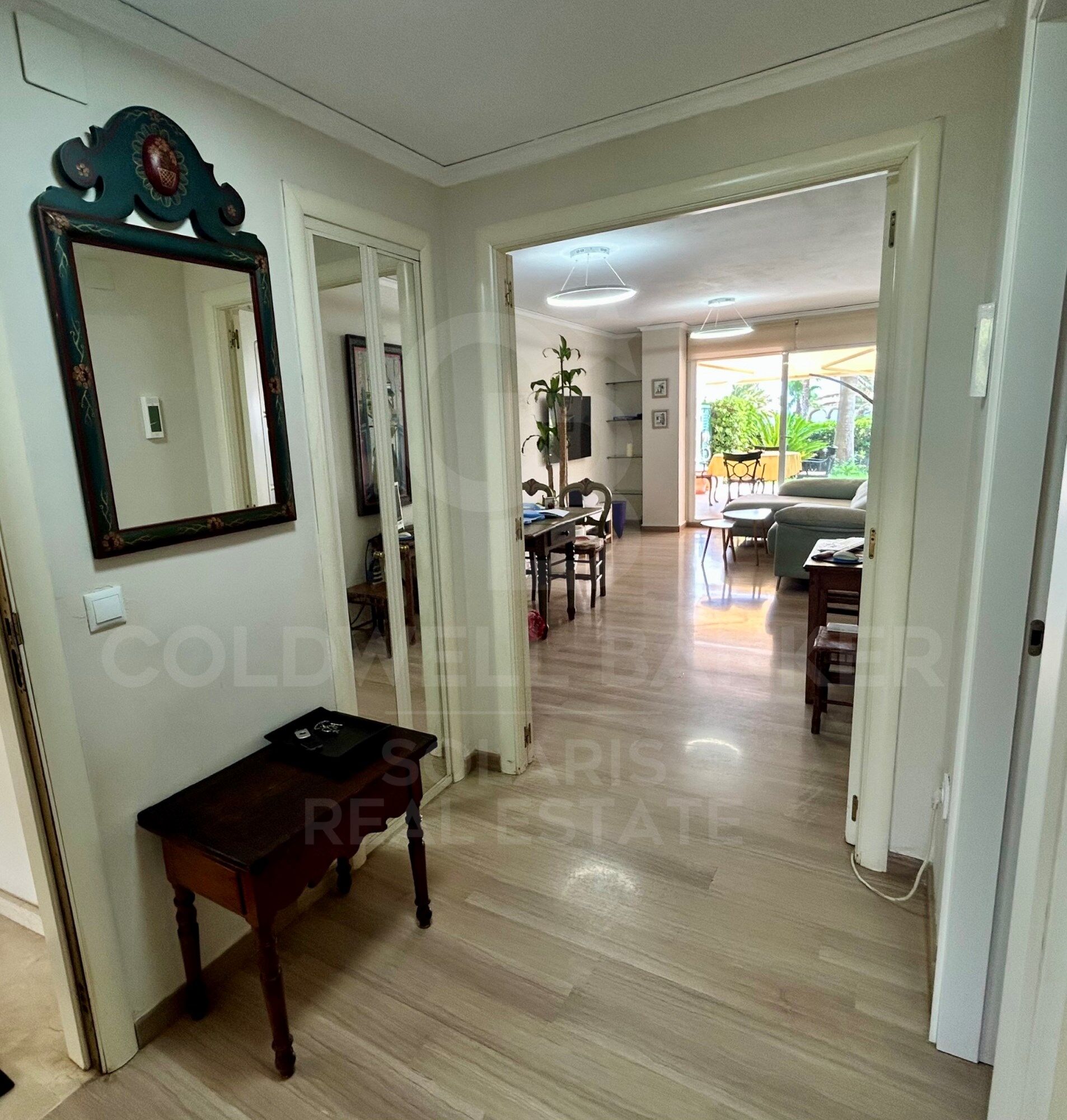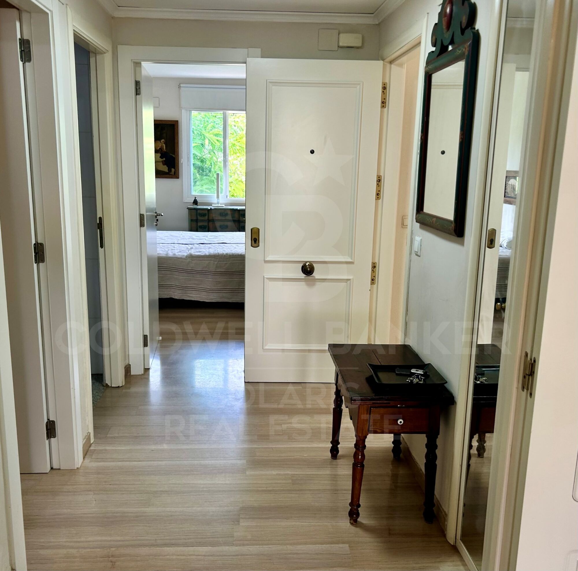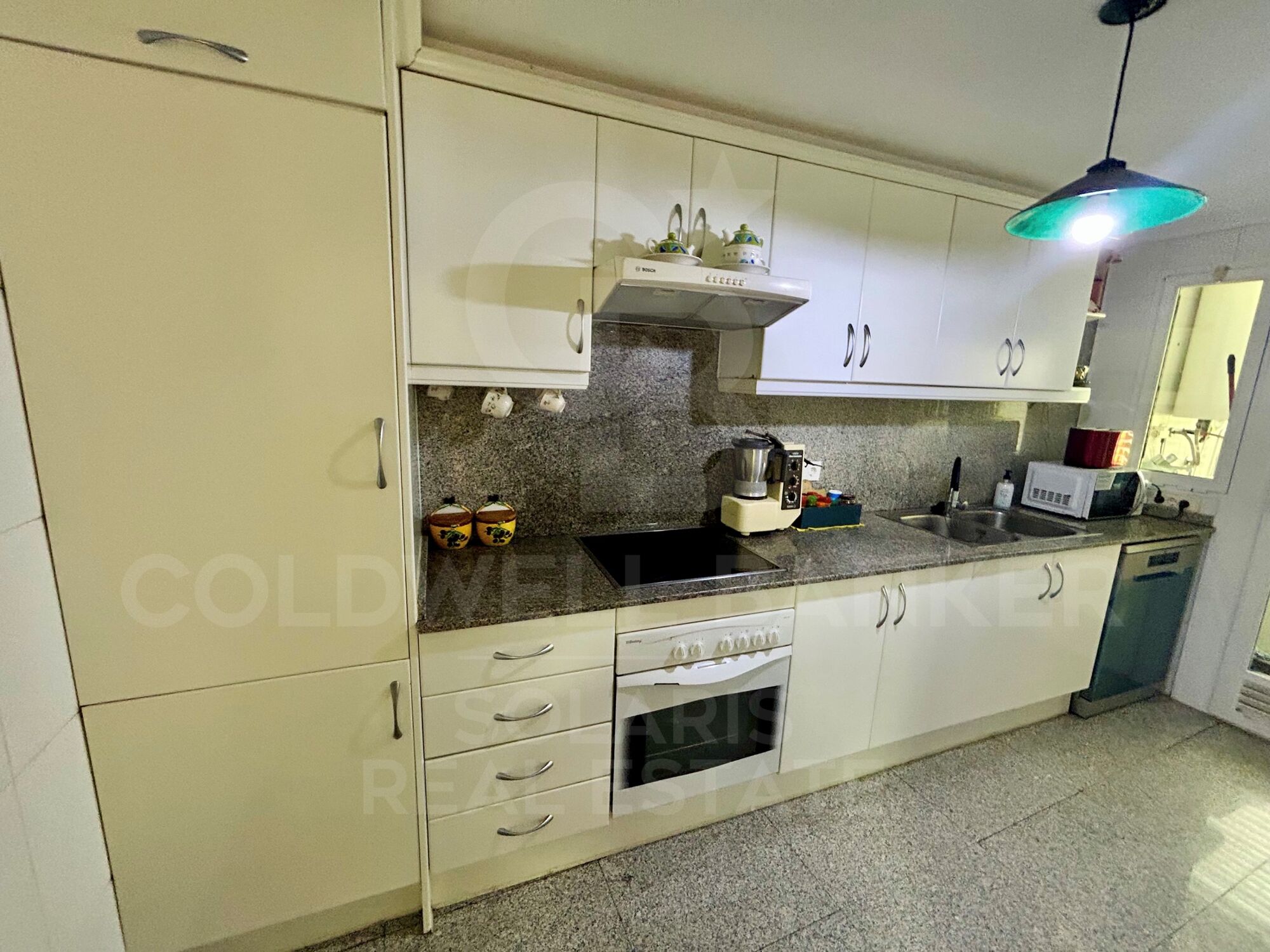 Located on the ground floor, it has a spacious and bright terrace that offers stunning views of the sea from the entrance of the house, the living room and one of its master bedrooms. Designed for those looking for quality and comfort, it offers 2 double bedrooms, one of them en-suite, 2 full bathrooms, separate kitchen with auxiliary storage room and a living-dining room with direct access to the terrace. Double glazing Climalit and electric blinds