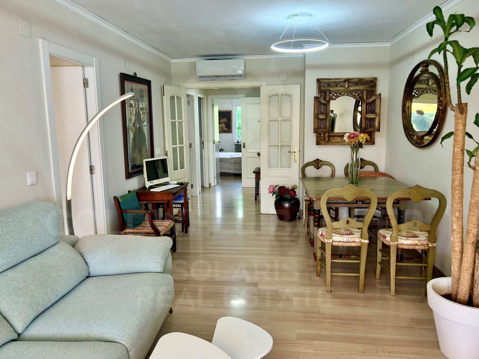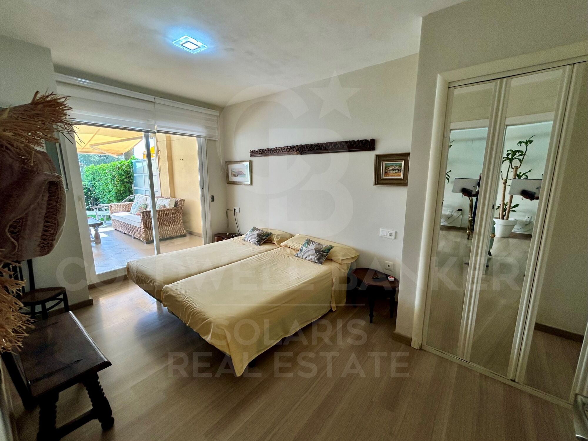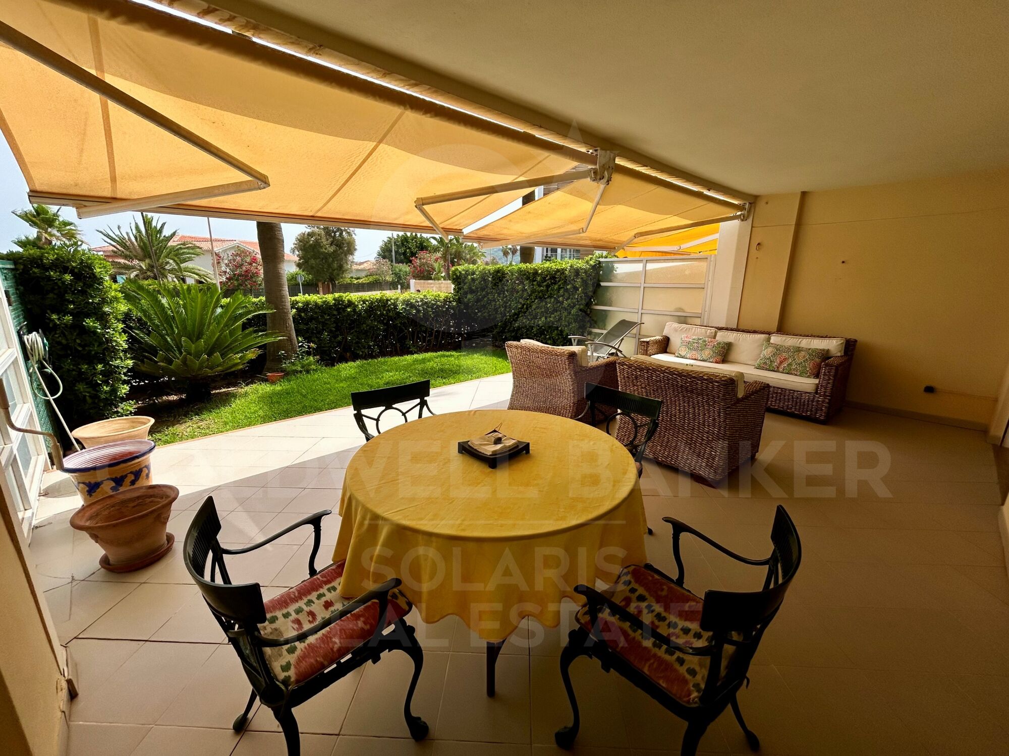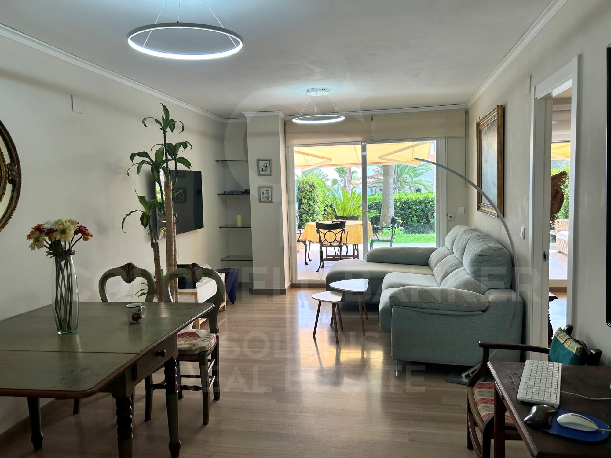 Located on the ground floor, it has a spacious and bright terrace that offers stunning views of the sea from the entrance of the house, the living room and one of its master bedrooms. Designed for those looking for quality and comfort, it offers 2 double bedrooms, one of them en-suite, 2 full bathrooms, separate kitchen with auxiliary storage room and a living-dining room with direct access to the terrace. Double glazing Climalit and electric blinds
