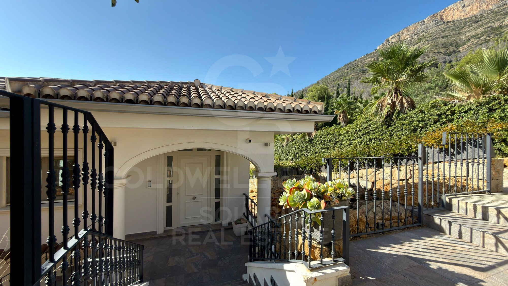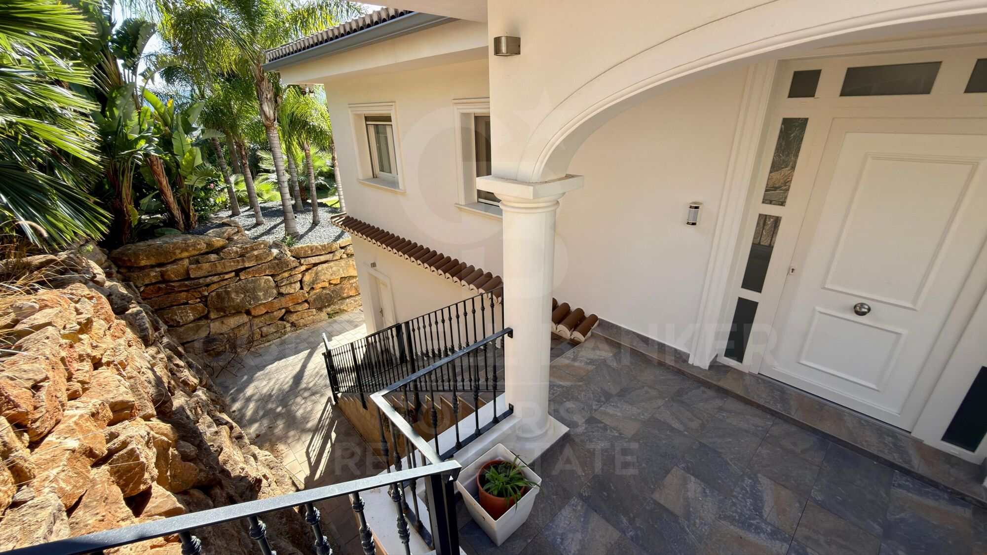 The beautifully landscaped garden features more than 60 palm trees and lush Mediterranean plants, all maintained by an automatic irrigation system controlled by home automation.