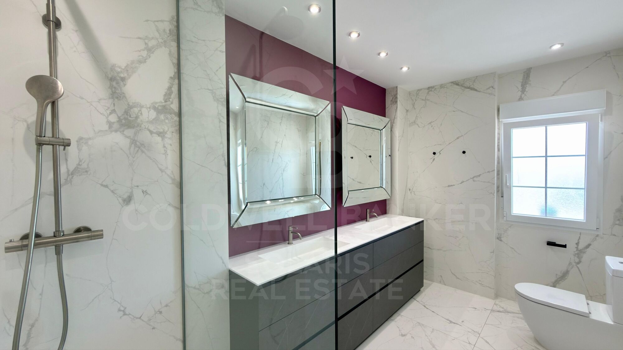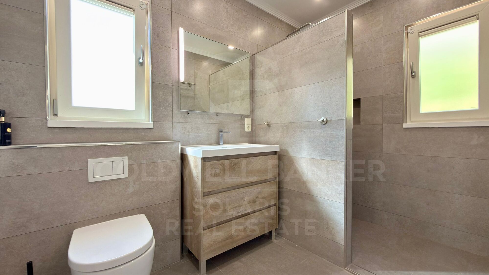 The villa is equipped with the latest advances in comfort and technology, ensuring a luxurious living experience. It offers air conditioning (hot and cold) and underfloor heating throughout the property, as well as double glazed windows with electric shutters for efficiency and comfort.