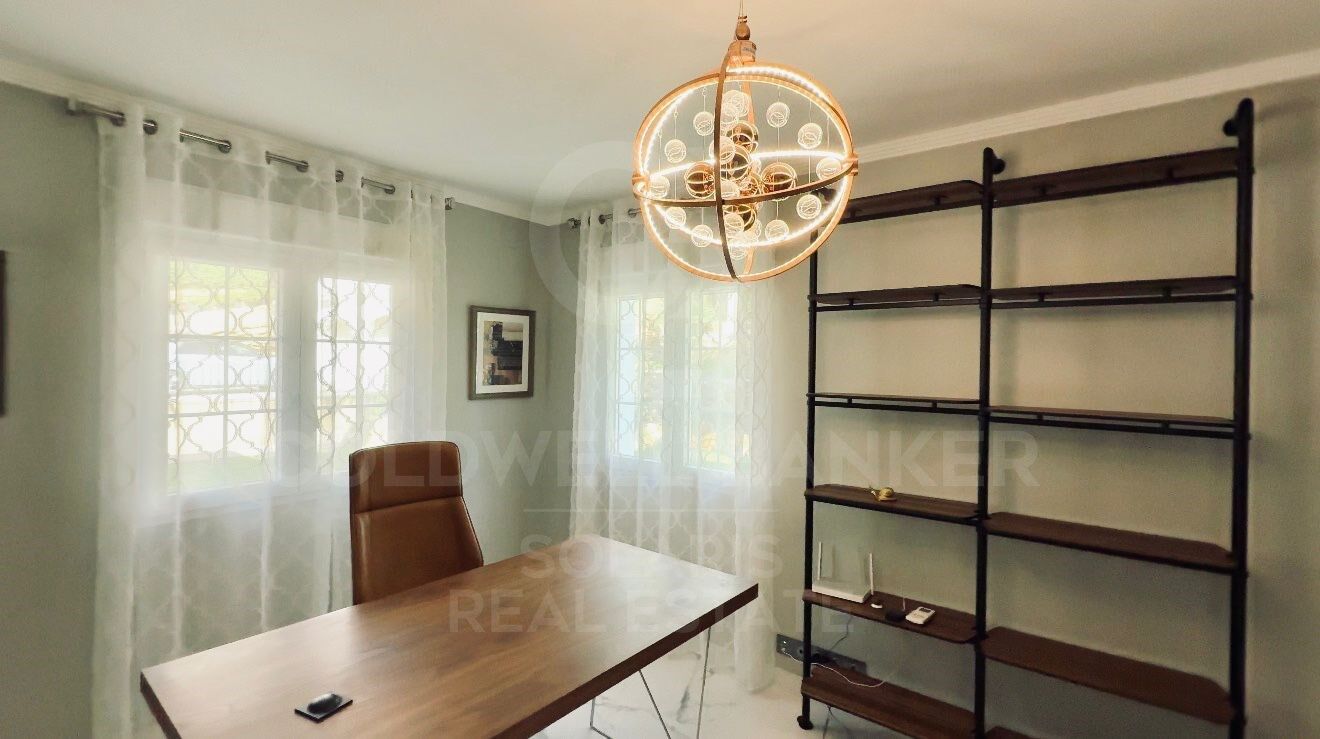 The villa is distributed over two floors plus basement, offering spacious and elegant spaces. It has three bedrooms, five bathrooms, a large dressing room, private office and beauty room, making it ideal for both comfort and lifestyle.