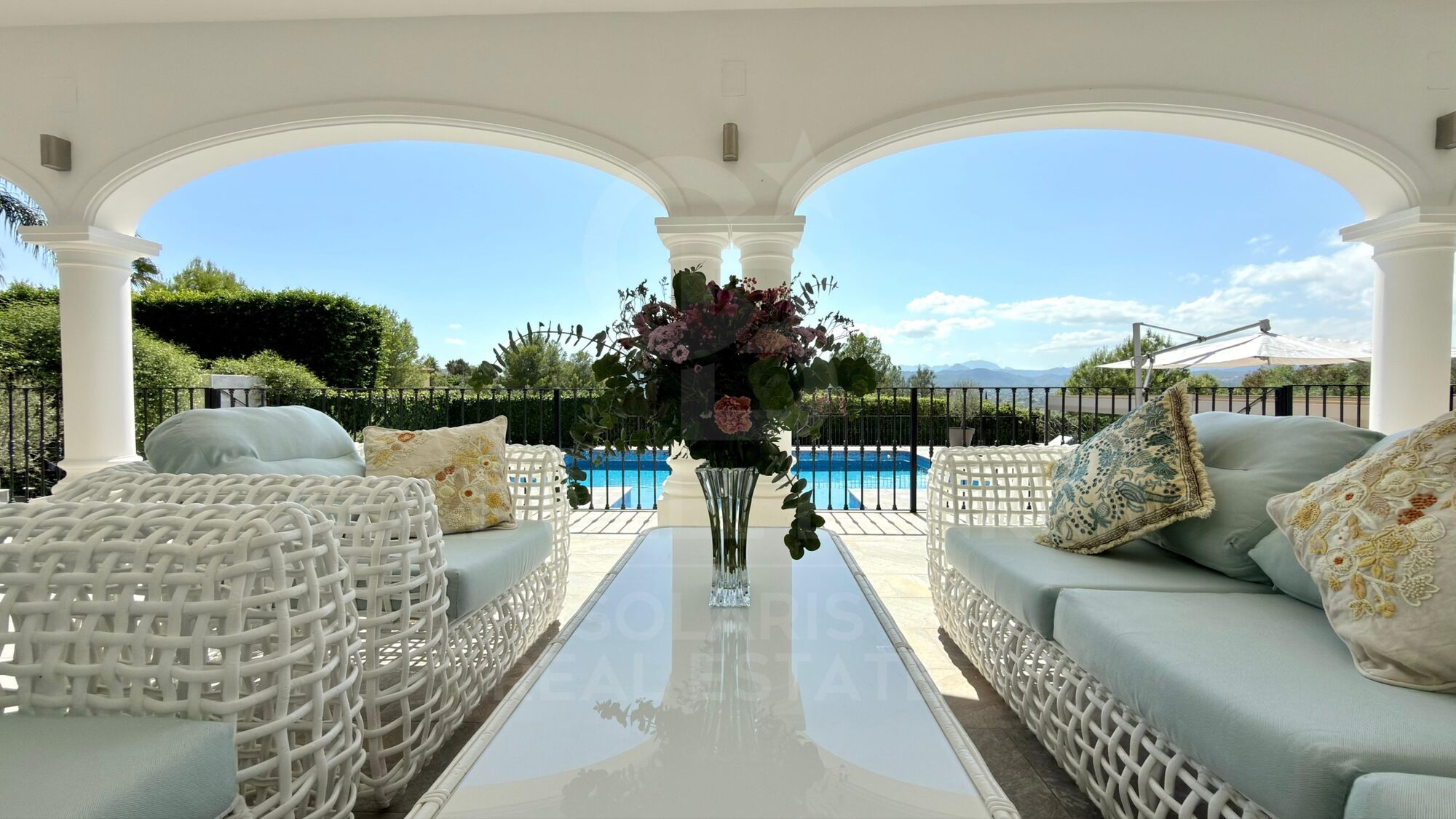 The villa offers multiple outdoor spaces designed for both relaxation and entertaining. A fully equipped summer kitchen with automatic roof and barbecue makes it ideal for al fresco dining.