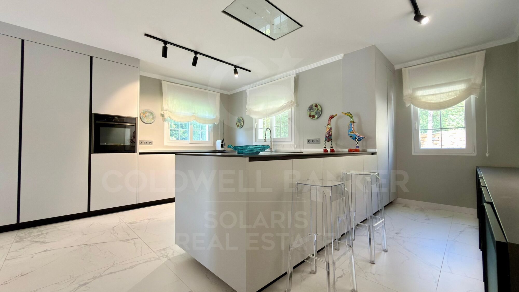 The villa is accessed by two automatic doors to a large main entrance hall. The entire perimeter is secured with reinforced fences, guaranteeing privacy and security, as well as being adapted for pets.